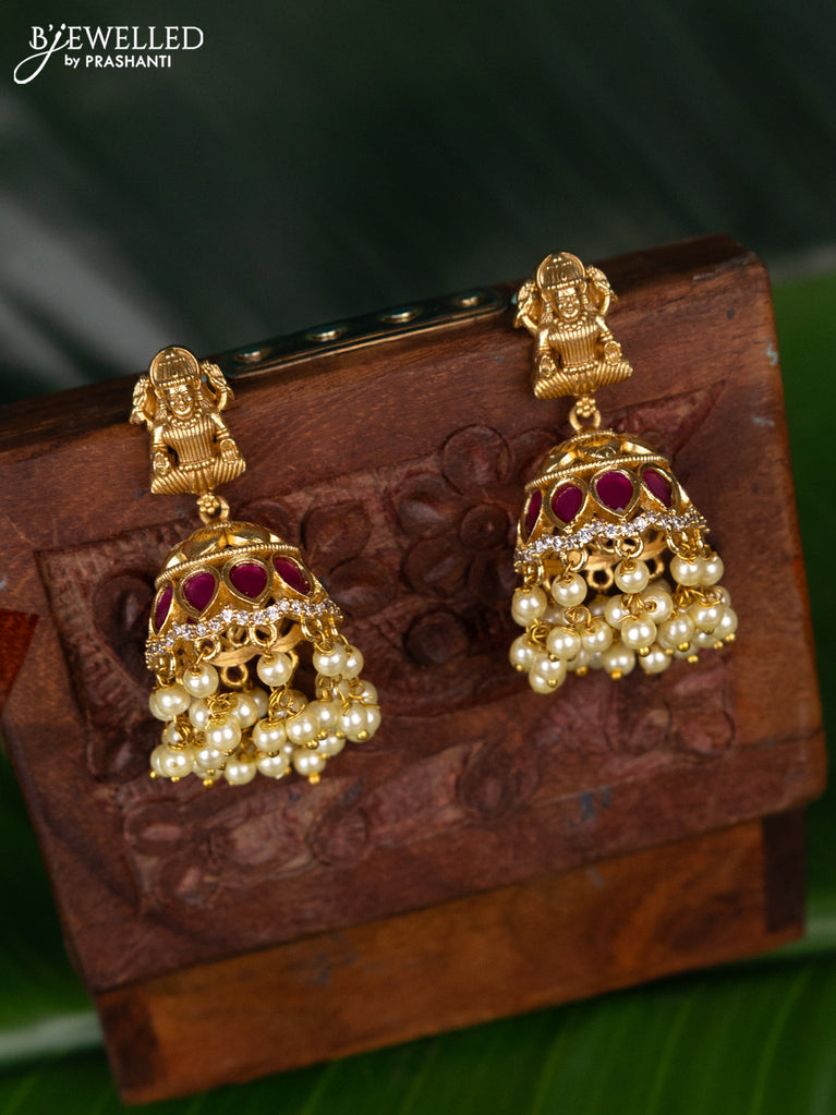 Antique jhumka lakshmi design with cz stones and pearl hangings
