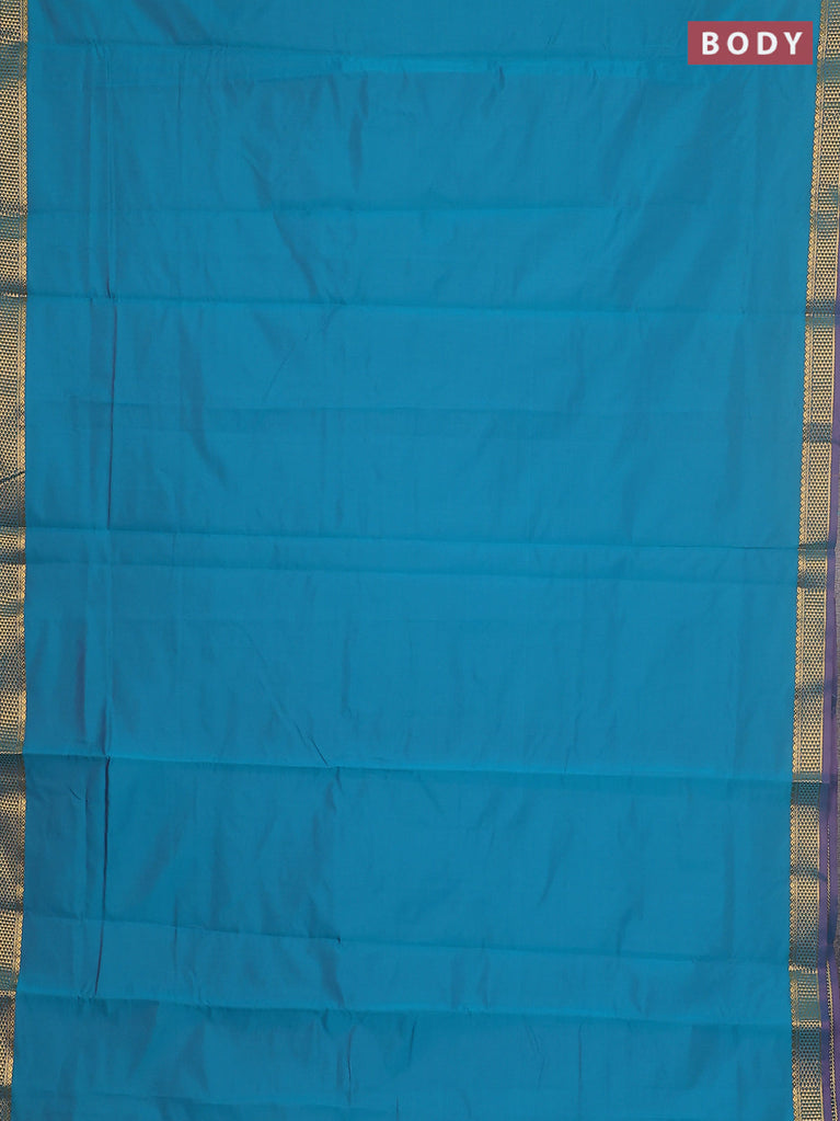 10 Yards silk cotton saree blue and cs blue with plain body and zari woven korvai border