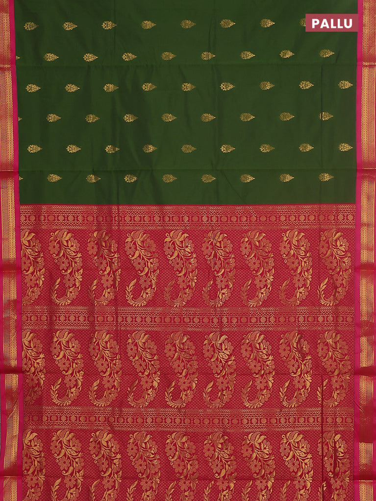 10 yards salem silk saree sap green and pink with zari woven buttas and zari woven border