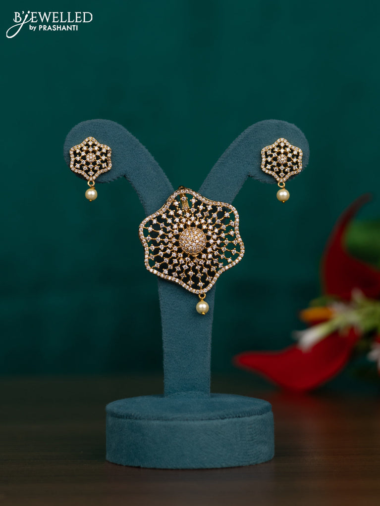 Antique pendant set with cz stones and pearl hangings