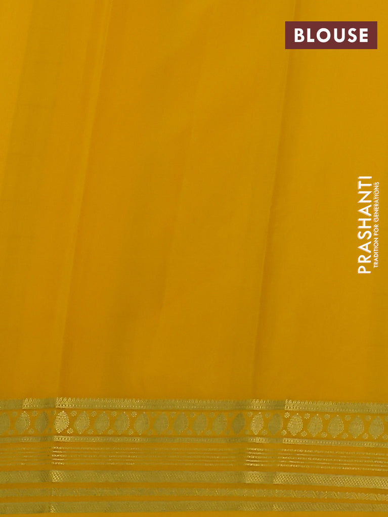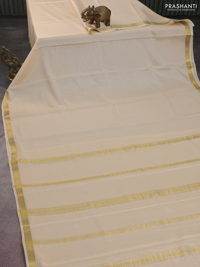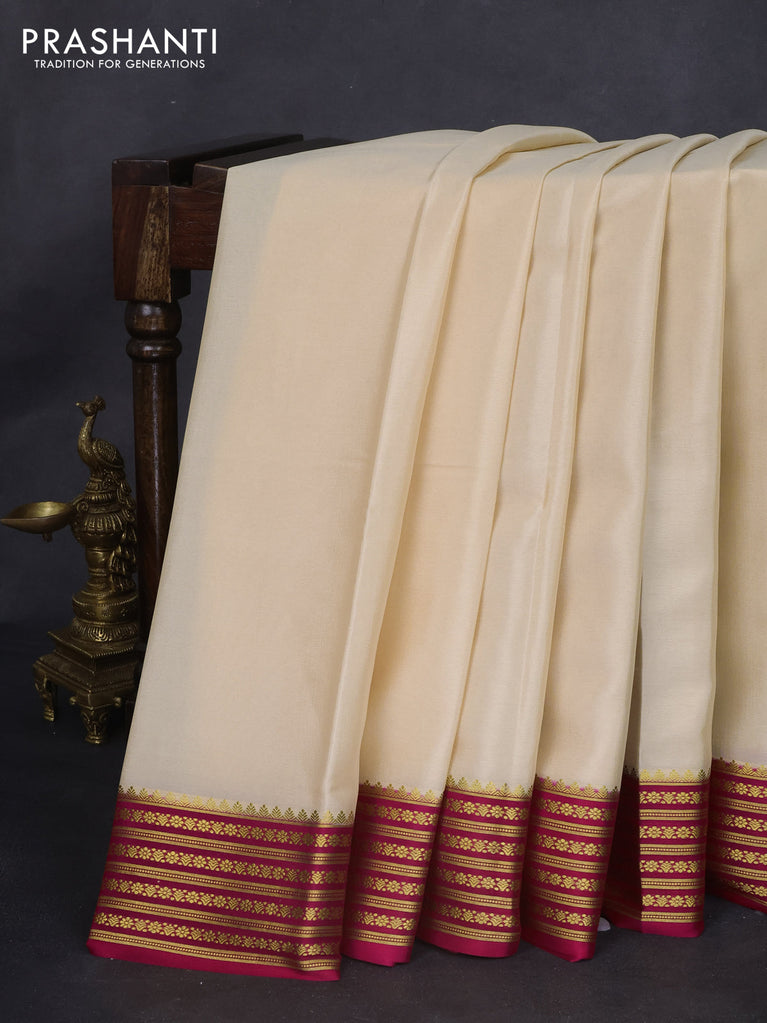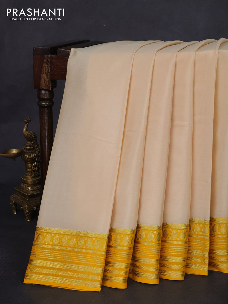 Pure mysore silk saree cream and yellow with plain body and zari woven border