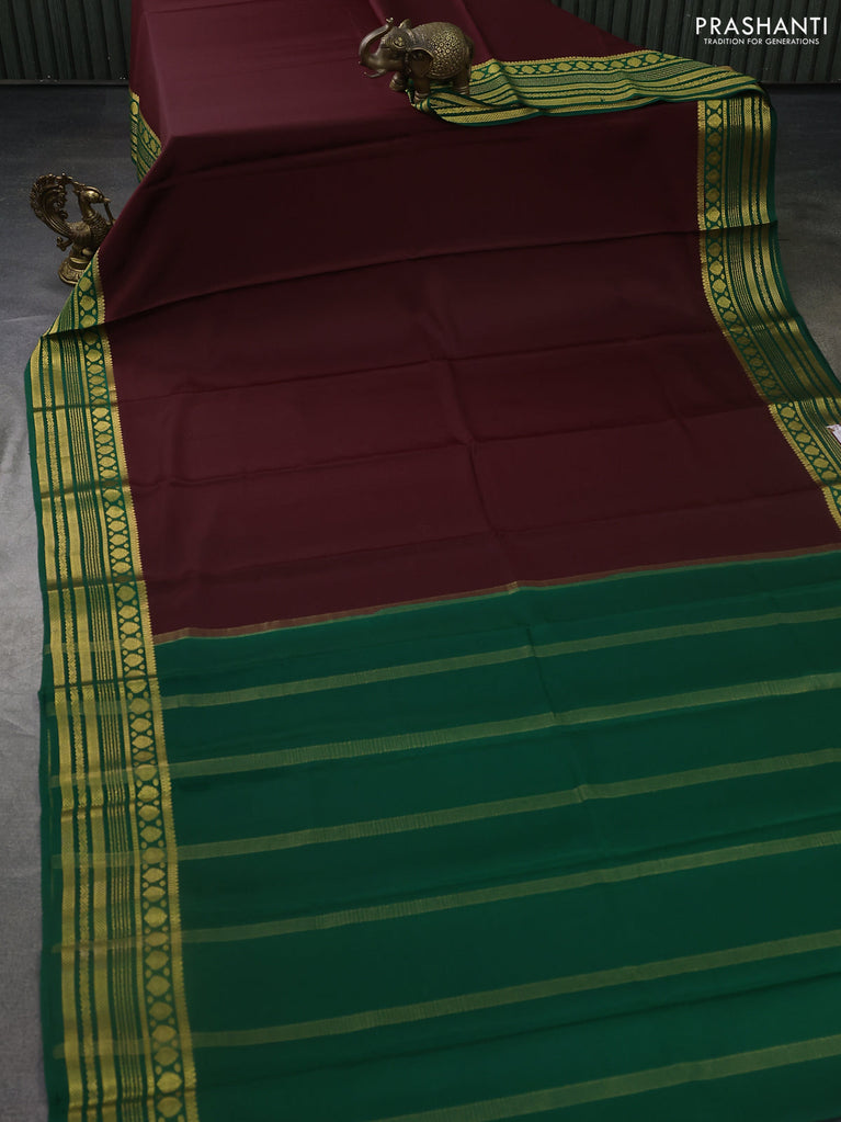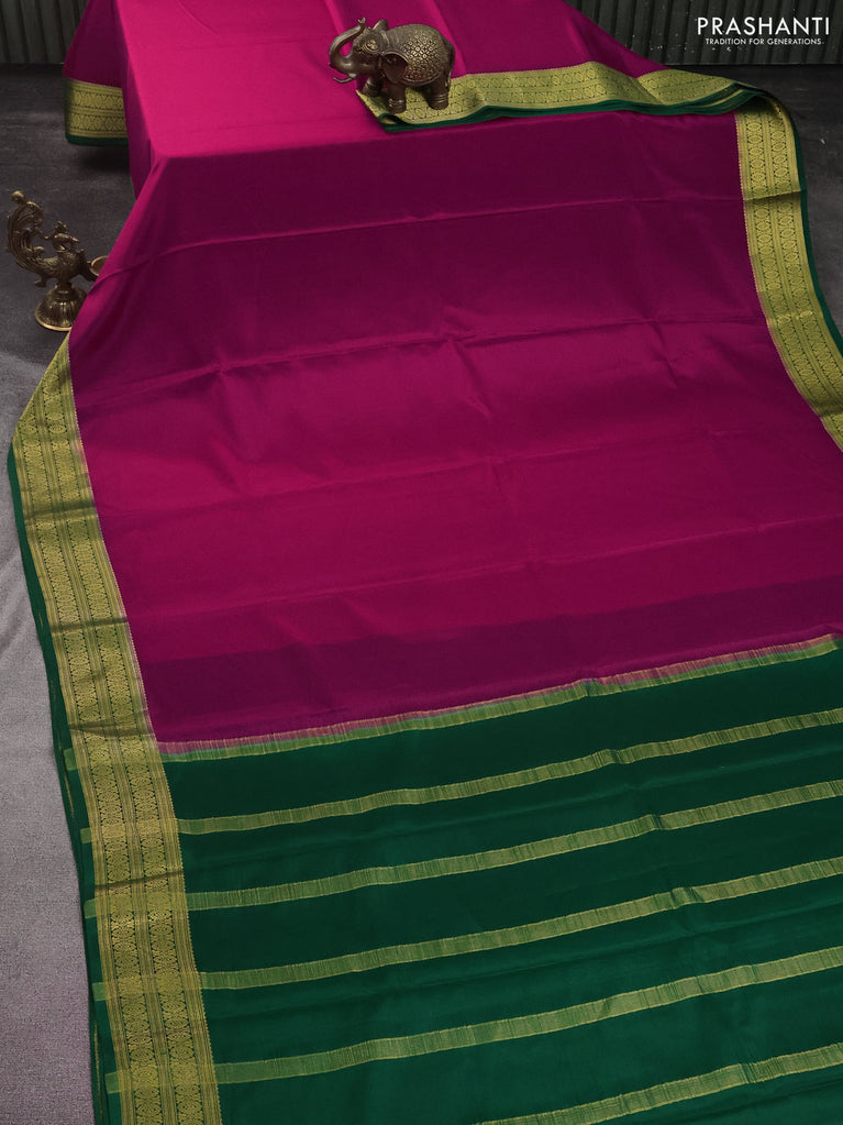 Pure mysore silk saree dark pink and dark green with plain body and zari woven border