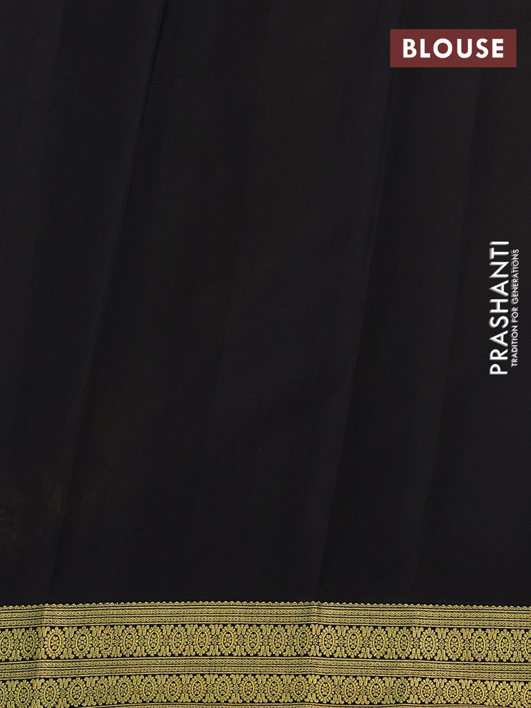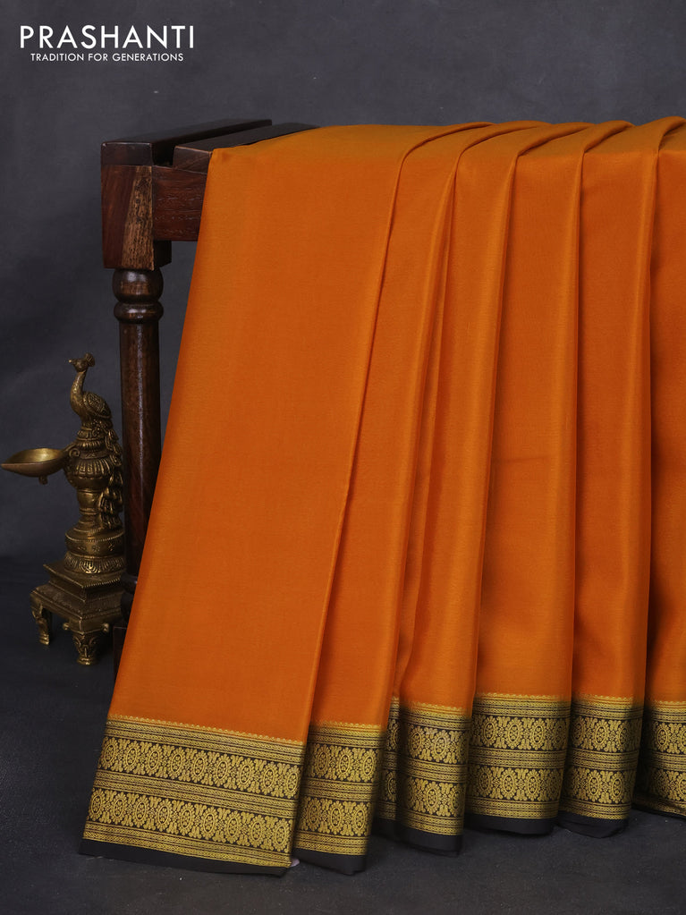 Pure mysore silk saree dark mustard and black with plain body and zari woven border