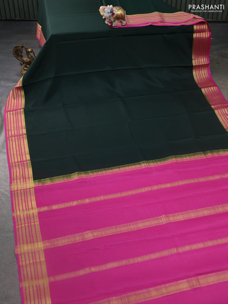 Pure mysore silk saree bottle green and pink with plain body and zari woven border