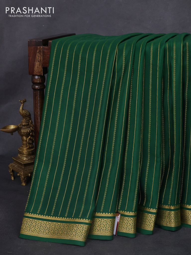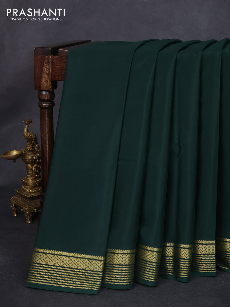 Pure mysore silk saree bottle green with plain body and zari woven border