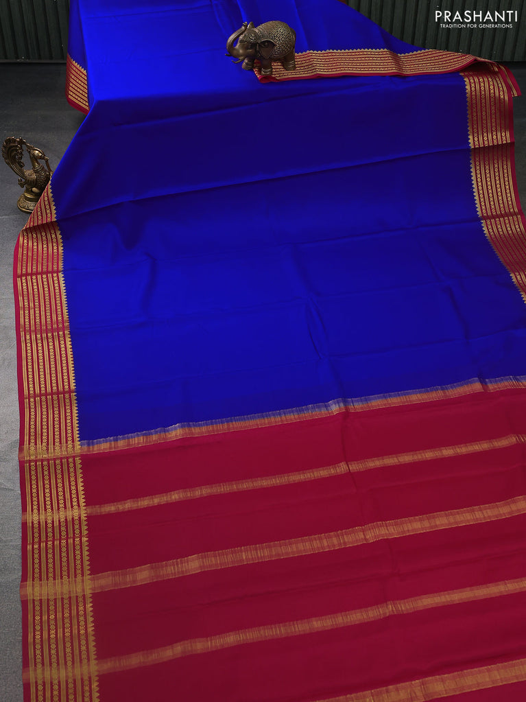 Pure mysore silk saree blue and dark pink with plain body and zari woven border