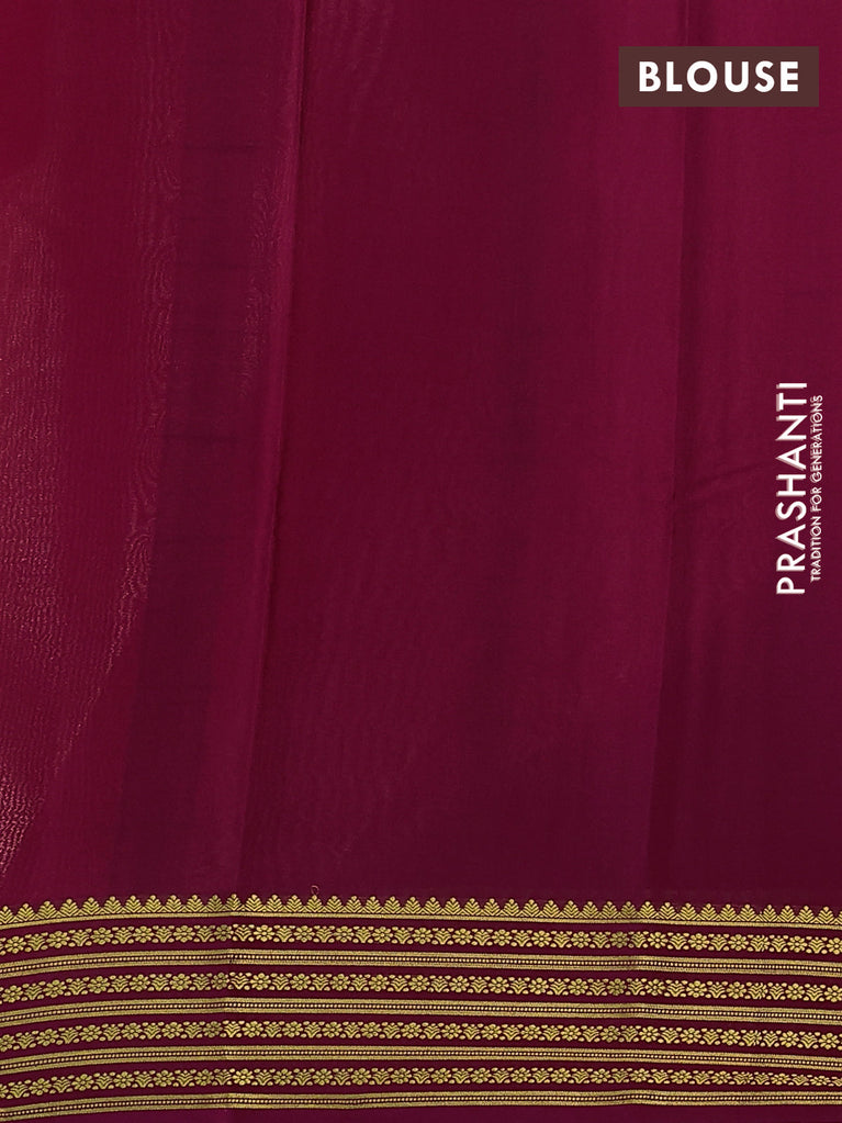 Pure mysore silk saree dark pink and green with plain body and zari woven border