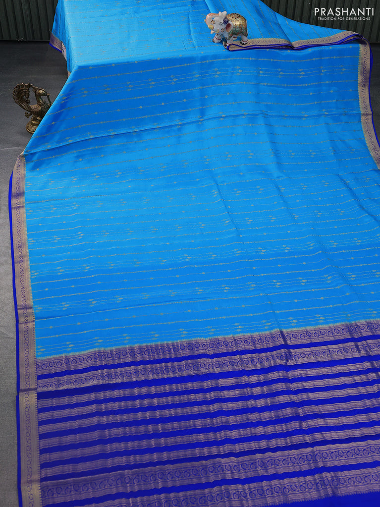Pure mysore silk saree cs blue and blue with allover zari woven buttas and zari woven border