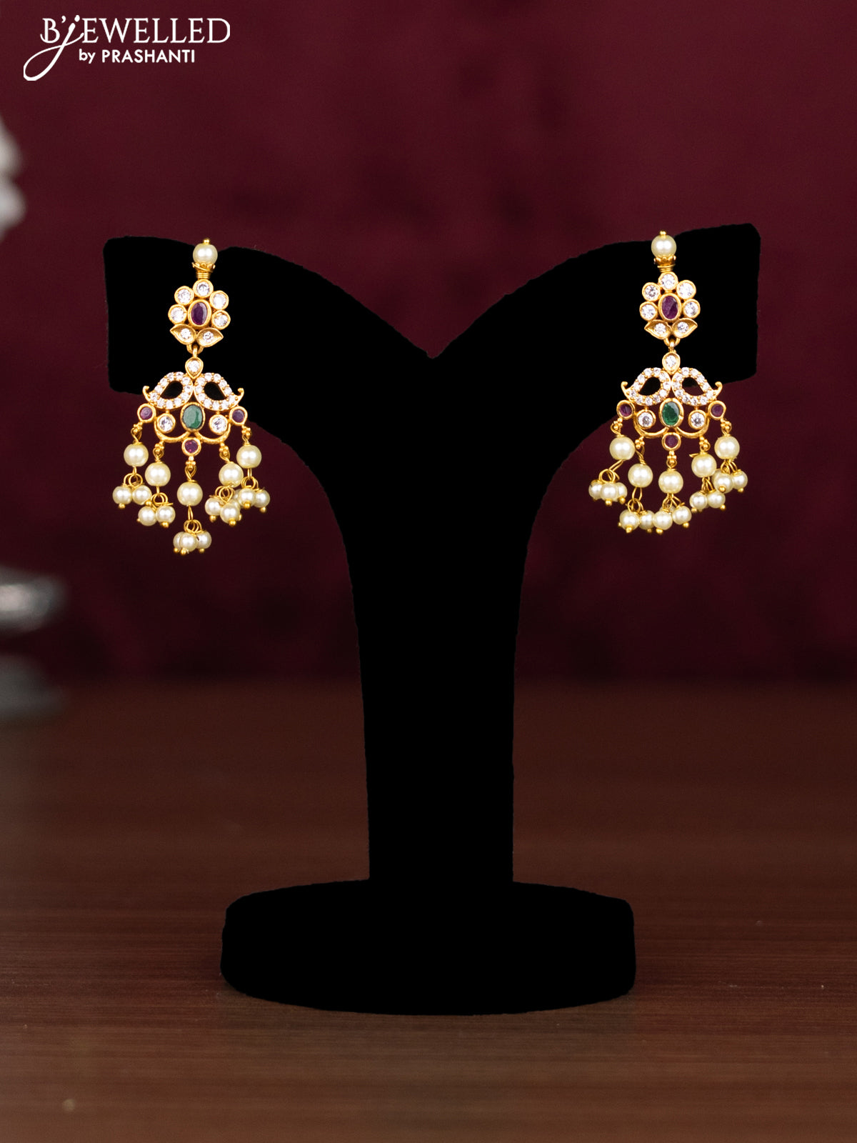Antique guttapusalu necklace manga design with kemp & cz stones and pearl hangings