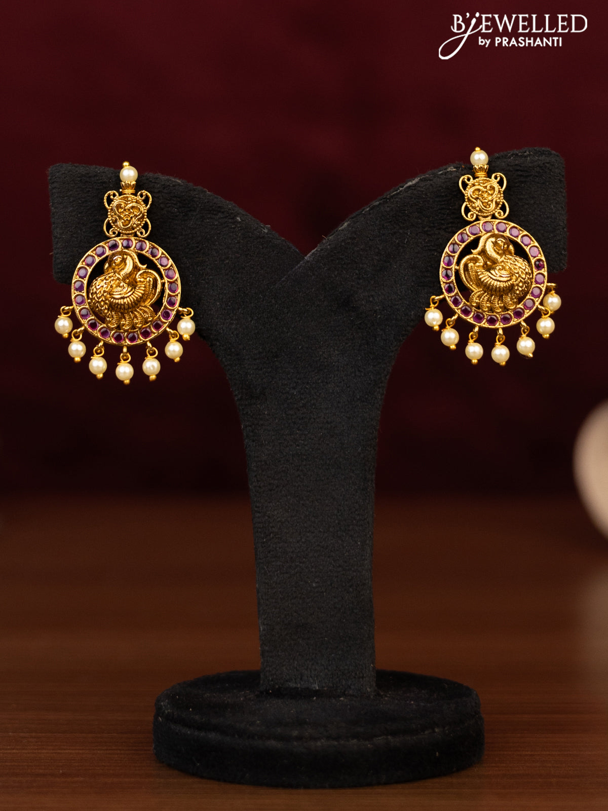 Antique guttapusalu necklace peacock & manga design with kemp & cz stones and pearl hangings