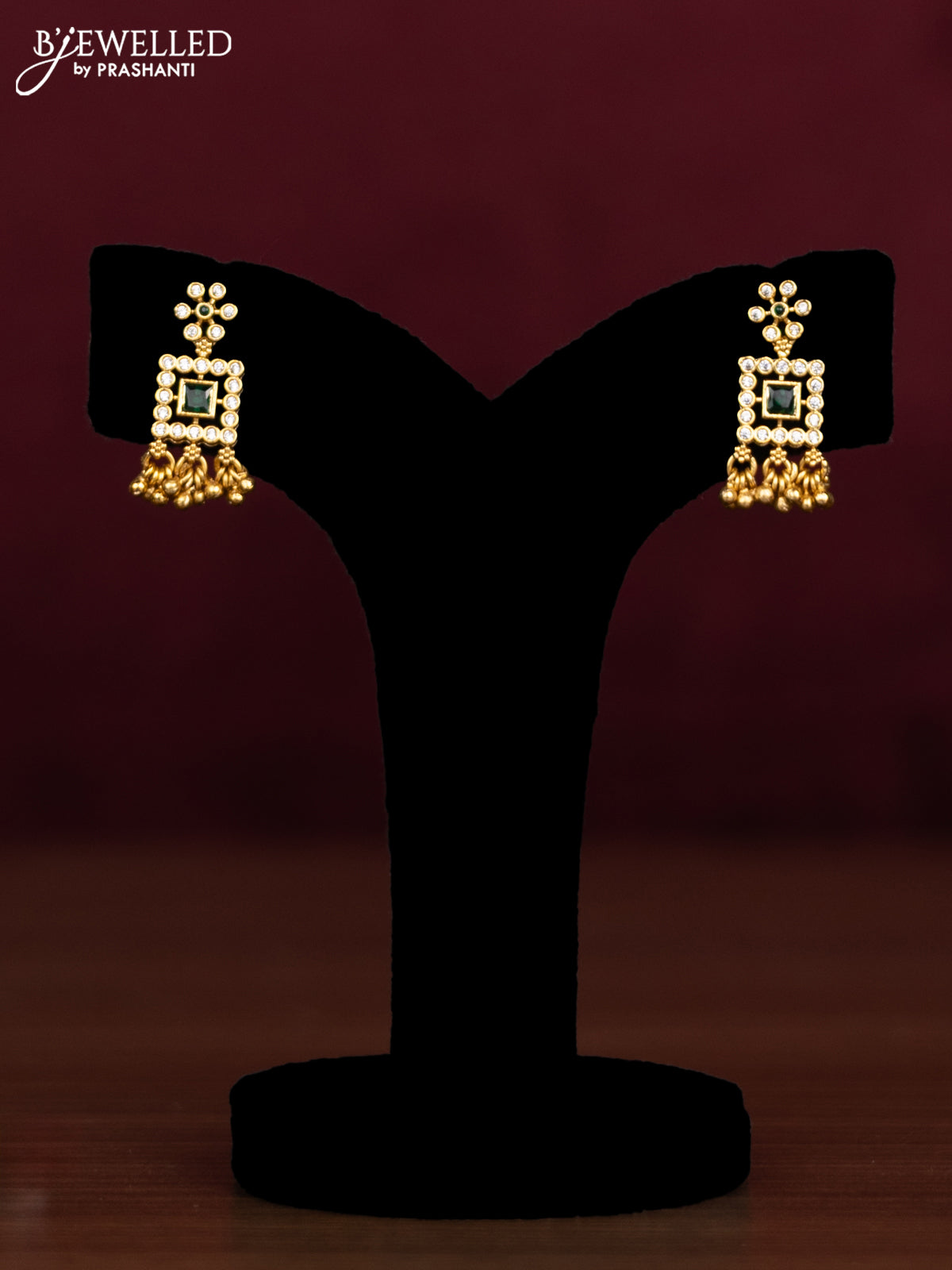 Antique guttapusalu necklace with emerald & cz stones and golden beads hangings