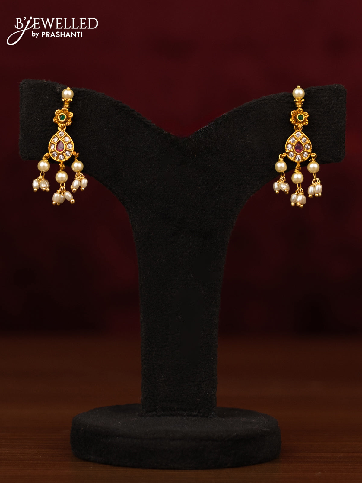Antique guttapusalu necklace with kemp & cz stones and pearl hangings