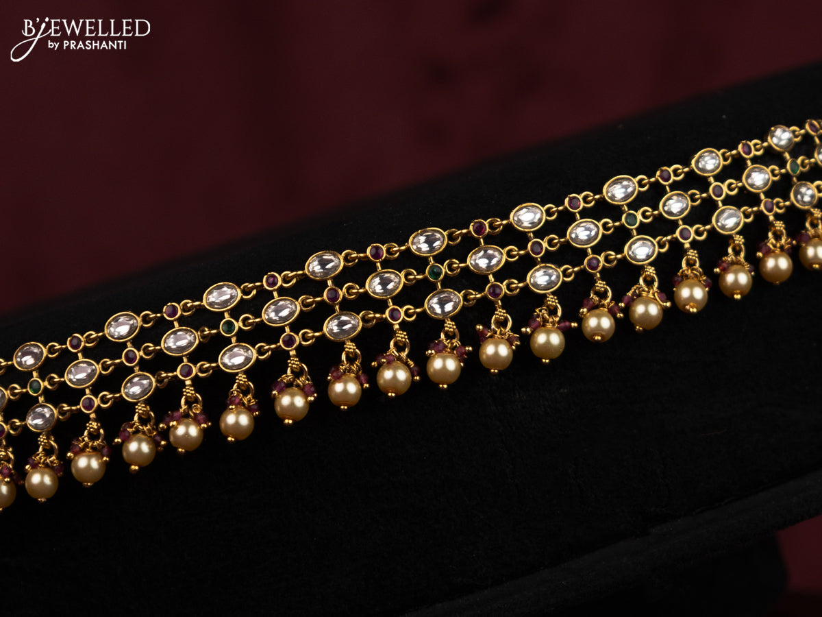 Antique hip chain with kemp & kundan stones and pearl & beads hanging