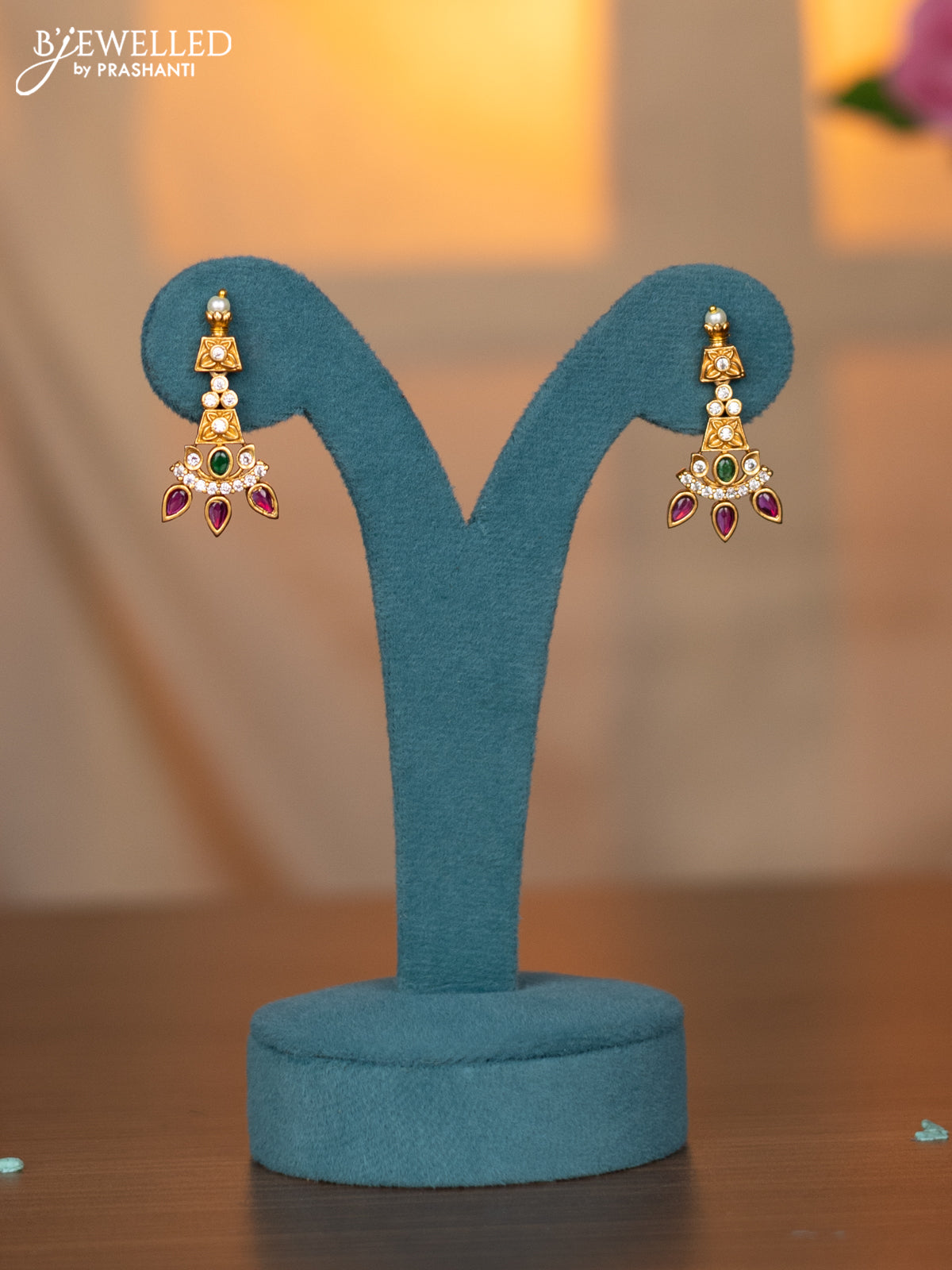Antique necklace peacock & manga pattern with kemp and cz stones & pearl hangings