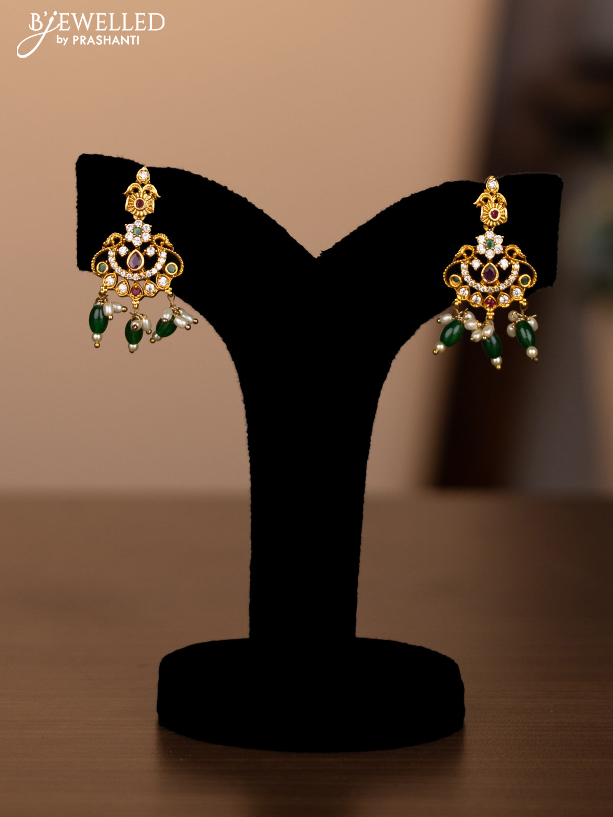 Antique necklace with kemp & cz stones and pearl & green beads hanging