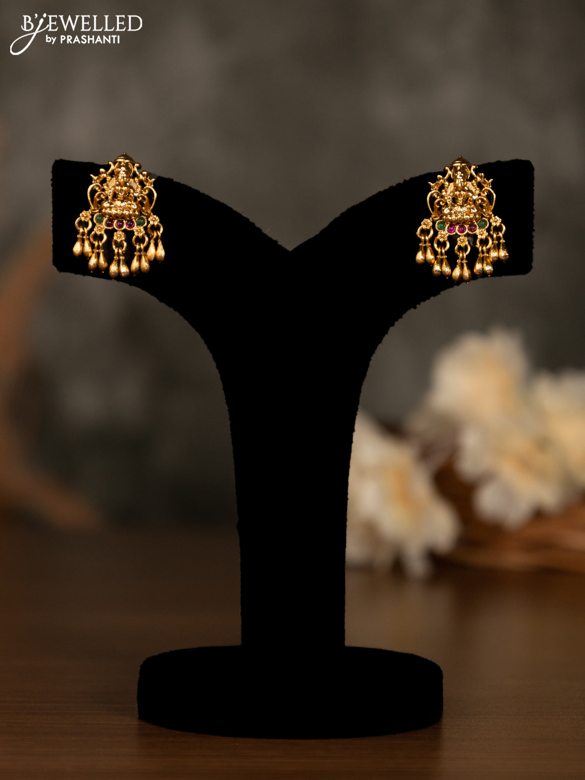 Antique pendant set lakshmi design with kemp stones and golden beads hanging