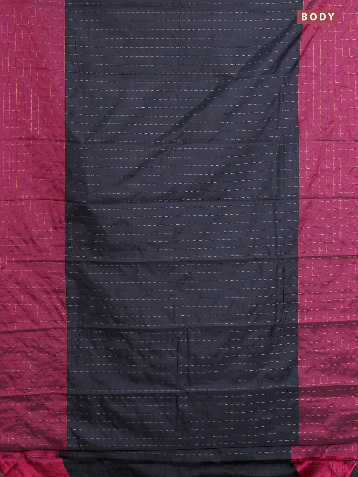 Arani semi silk saree dark grey and dark maagenta pink with allover copper zari weaves and zari checked border