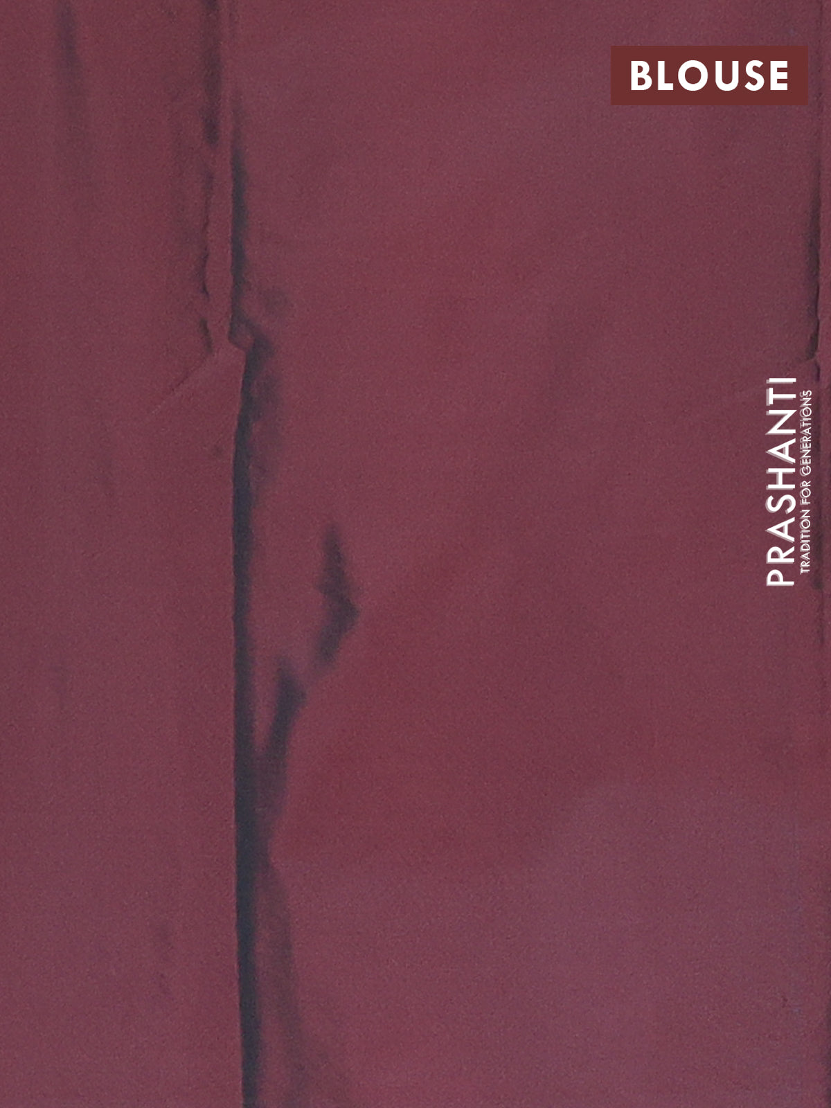 Arani semi silk saree dual shade of maroon with allover silver zari weaves in borderless style