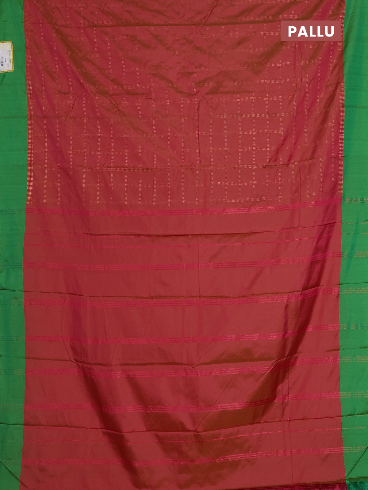 Arani semi silk saree dual shade of pink and green with allover copper zari checked pattern and copper zari woven simple border