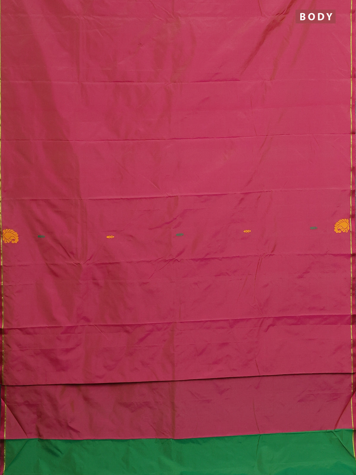 Arani semi silk saree dual shade of pink and green with thread woven buttas and thread woven butta border