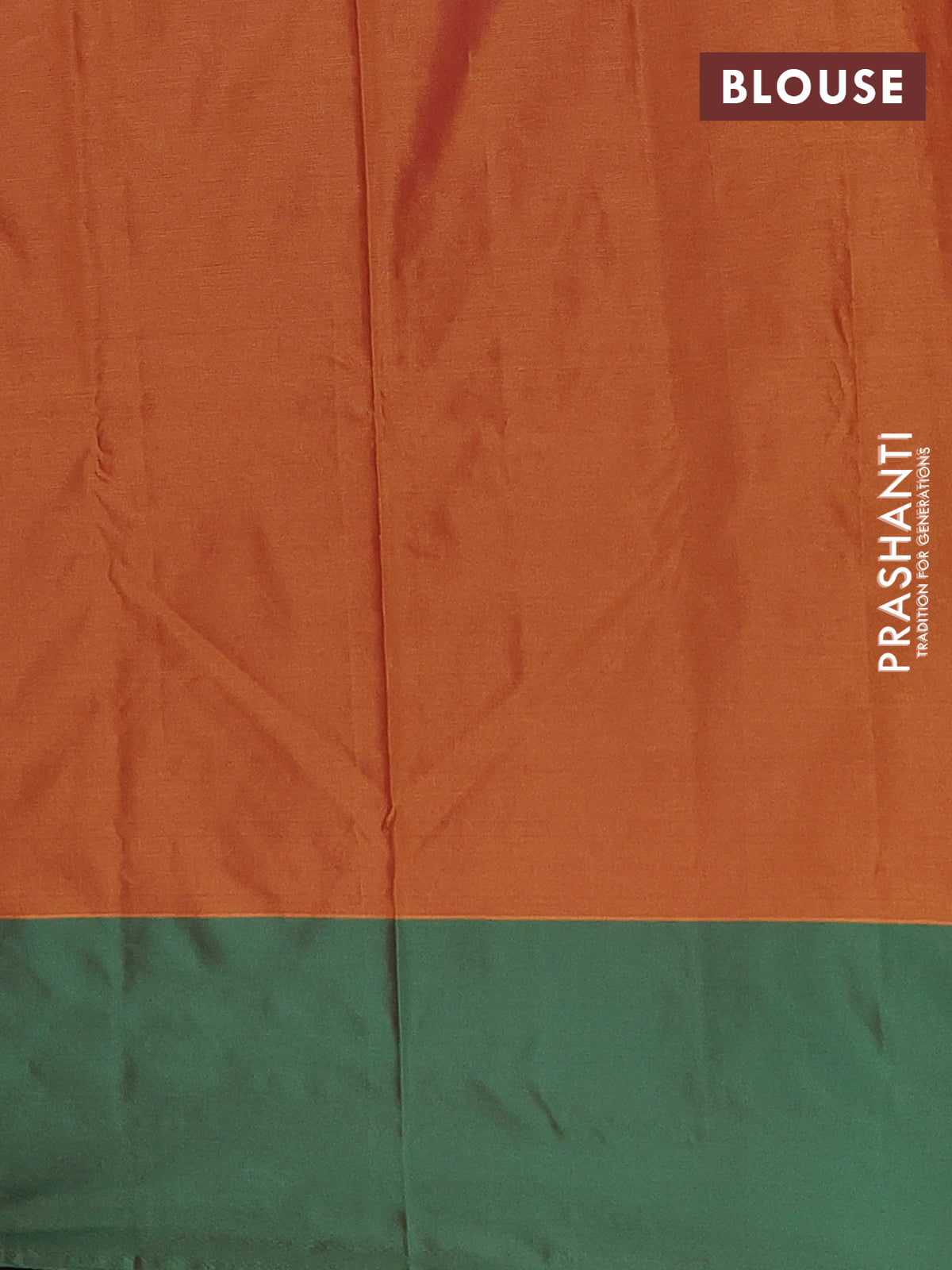 Arani semi silk saree dual shade of violet and dual shade of green with copper zari woven buttas and copper zari woven butta border