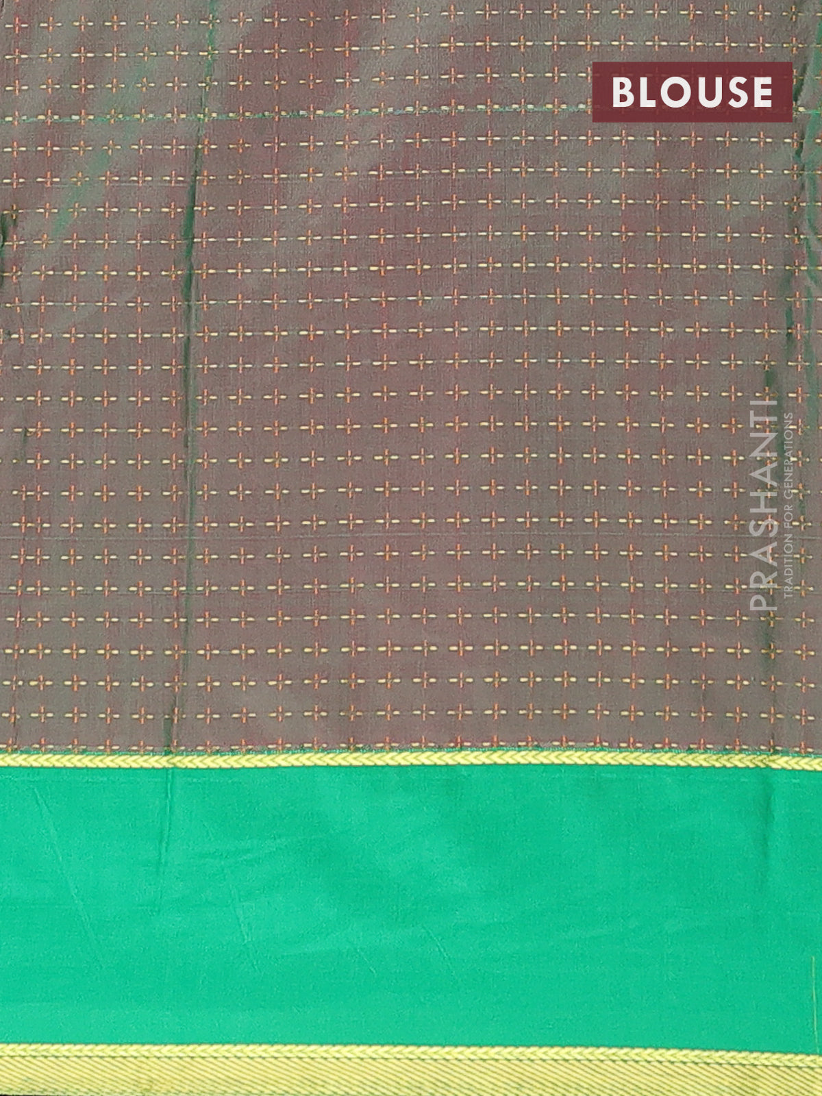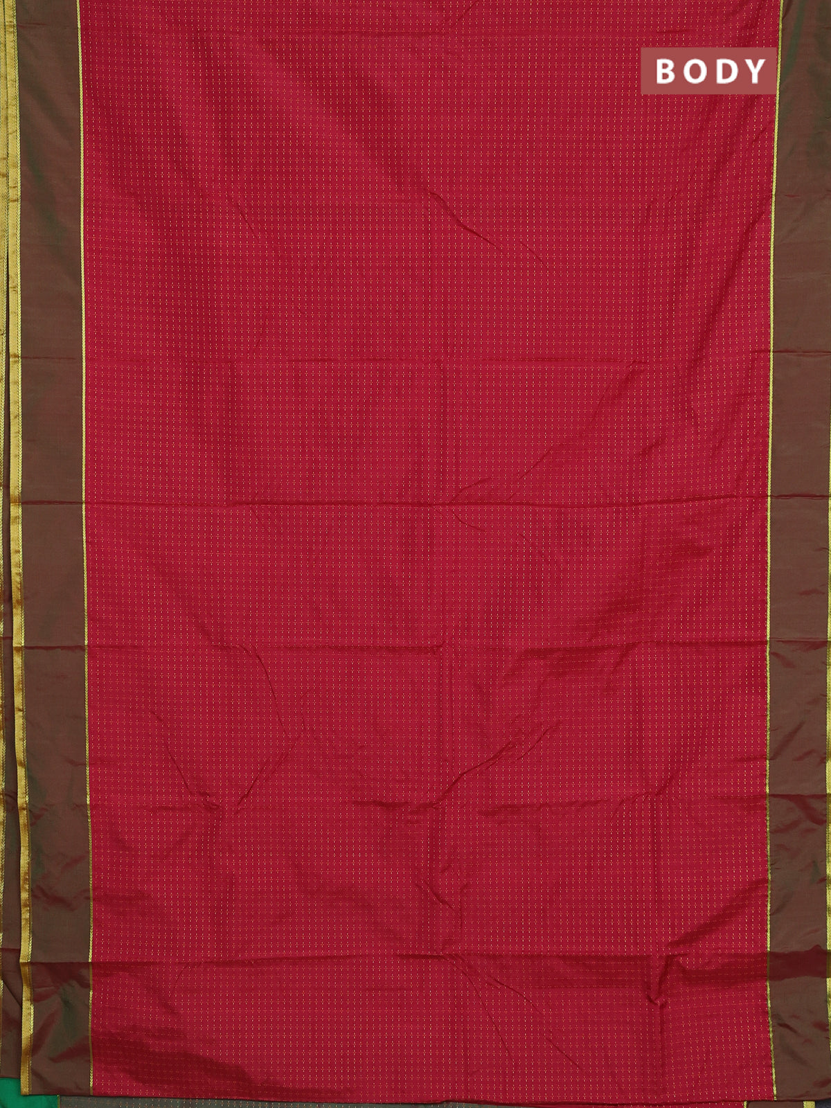 Arani semi silk saree maroon and dual shade of pinkish green with allover thread weaves and rettapet zari woven border`