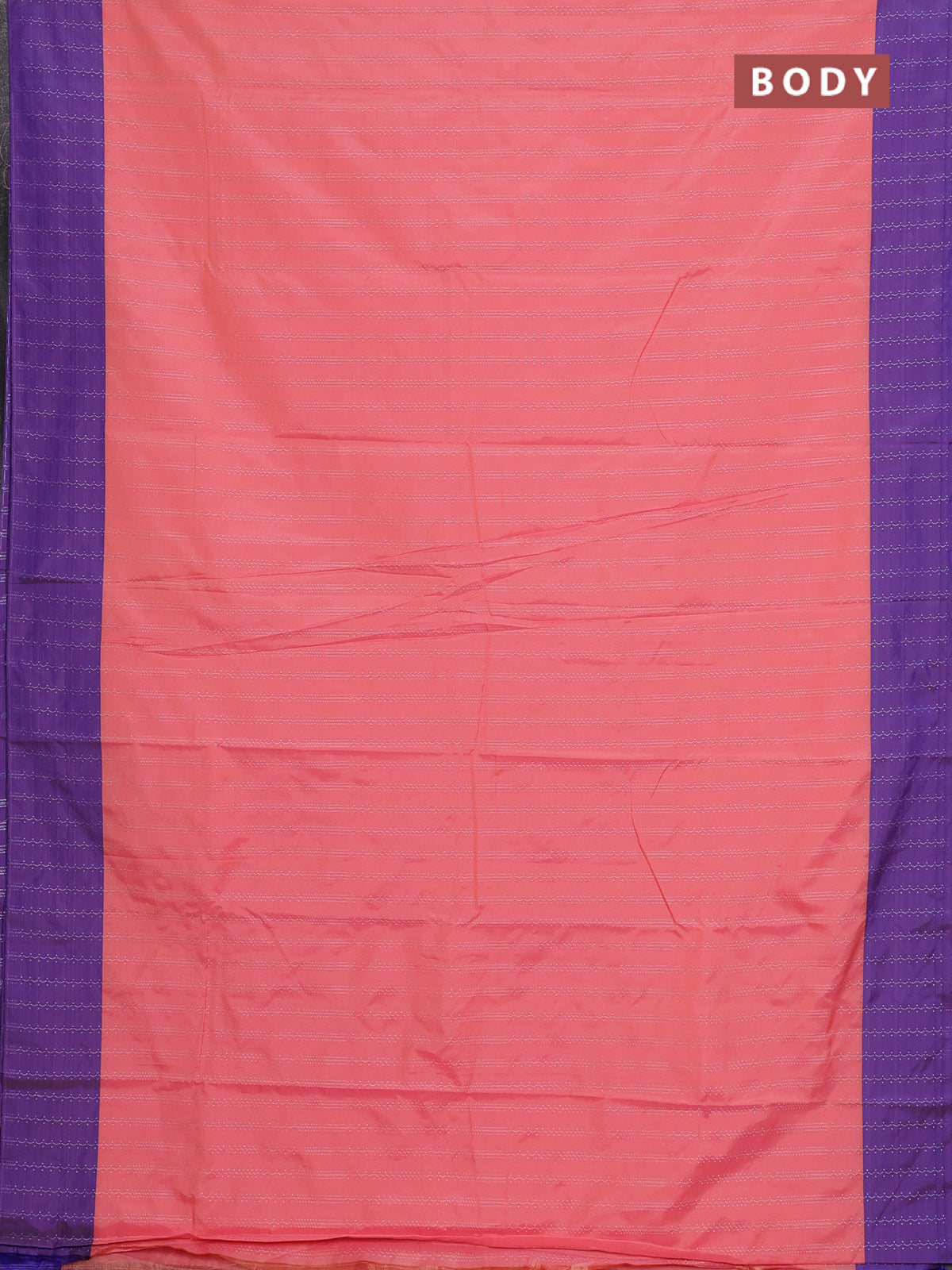 Arani semi silk saree peach pink and violet with allover copper zari weaves and zari woven border