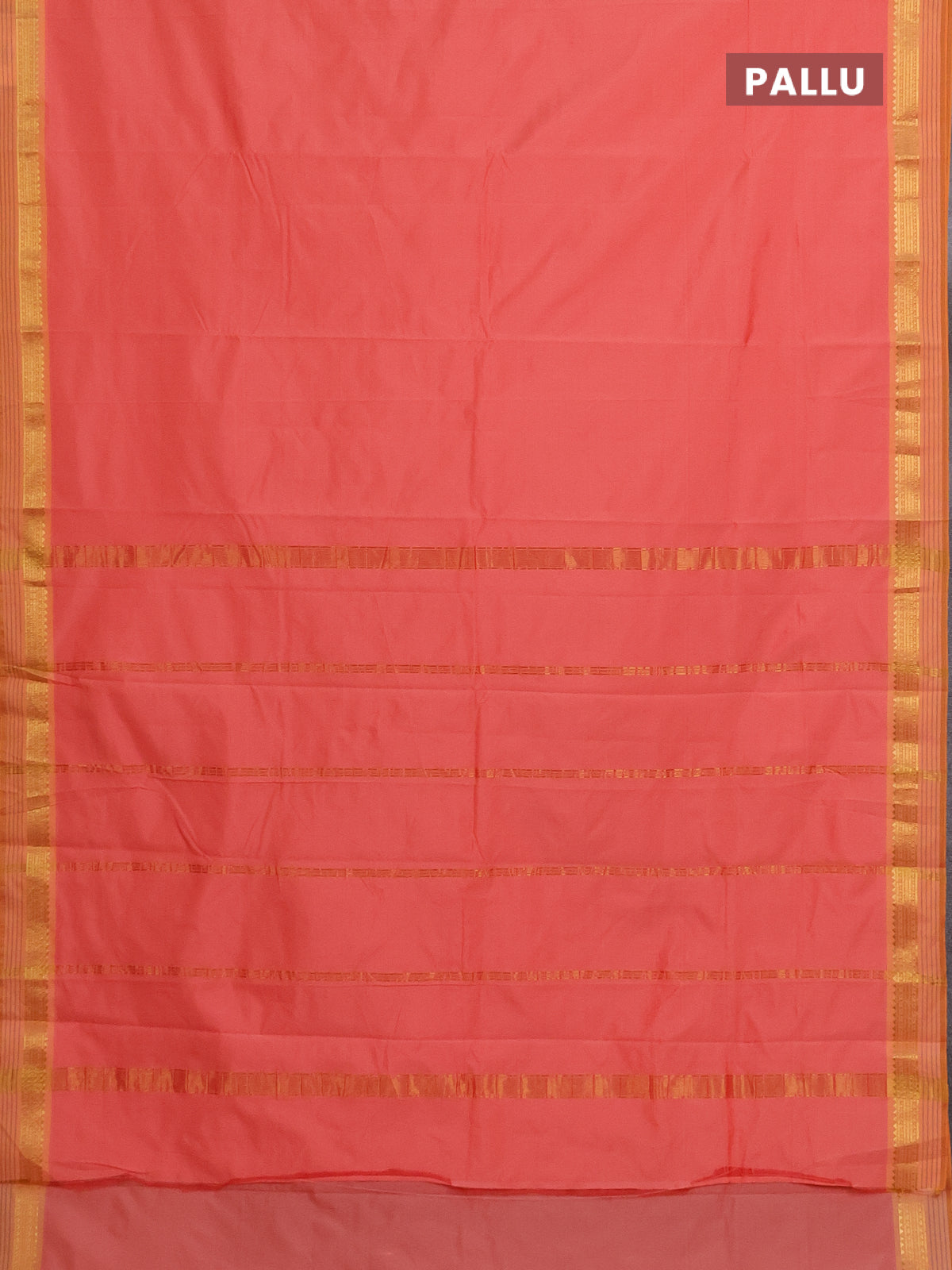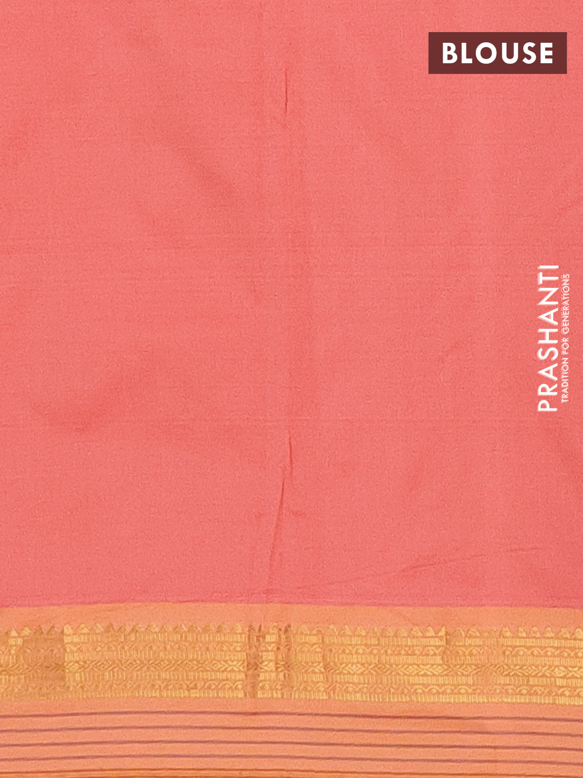 Arani semi silk saree peach shade and mustard yellow with plain body and zari woven simple border