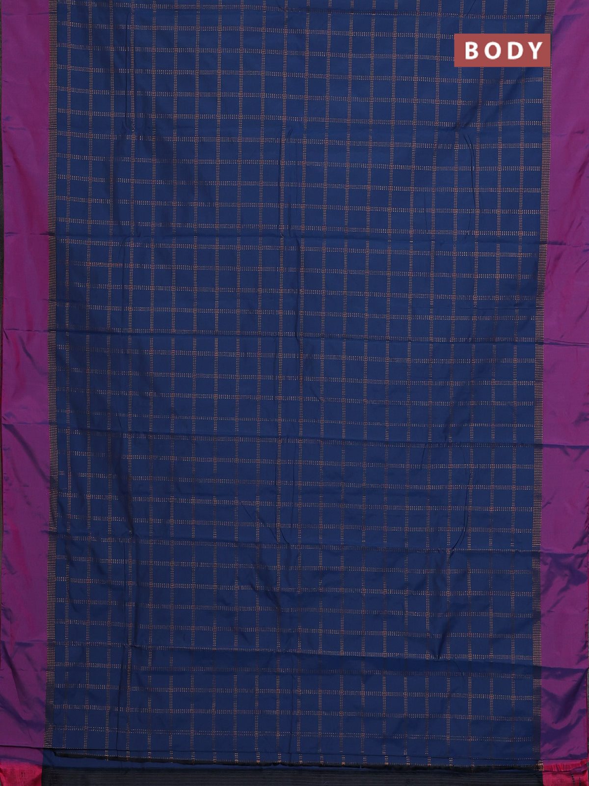 Arani semi silk saree peacock blue and magenta pink with allover copper zari checked pattern and copper zari woven simple border