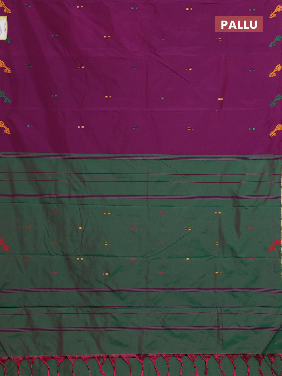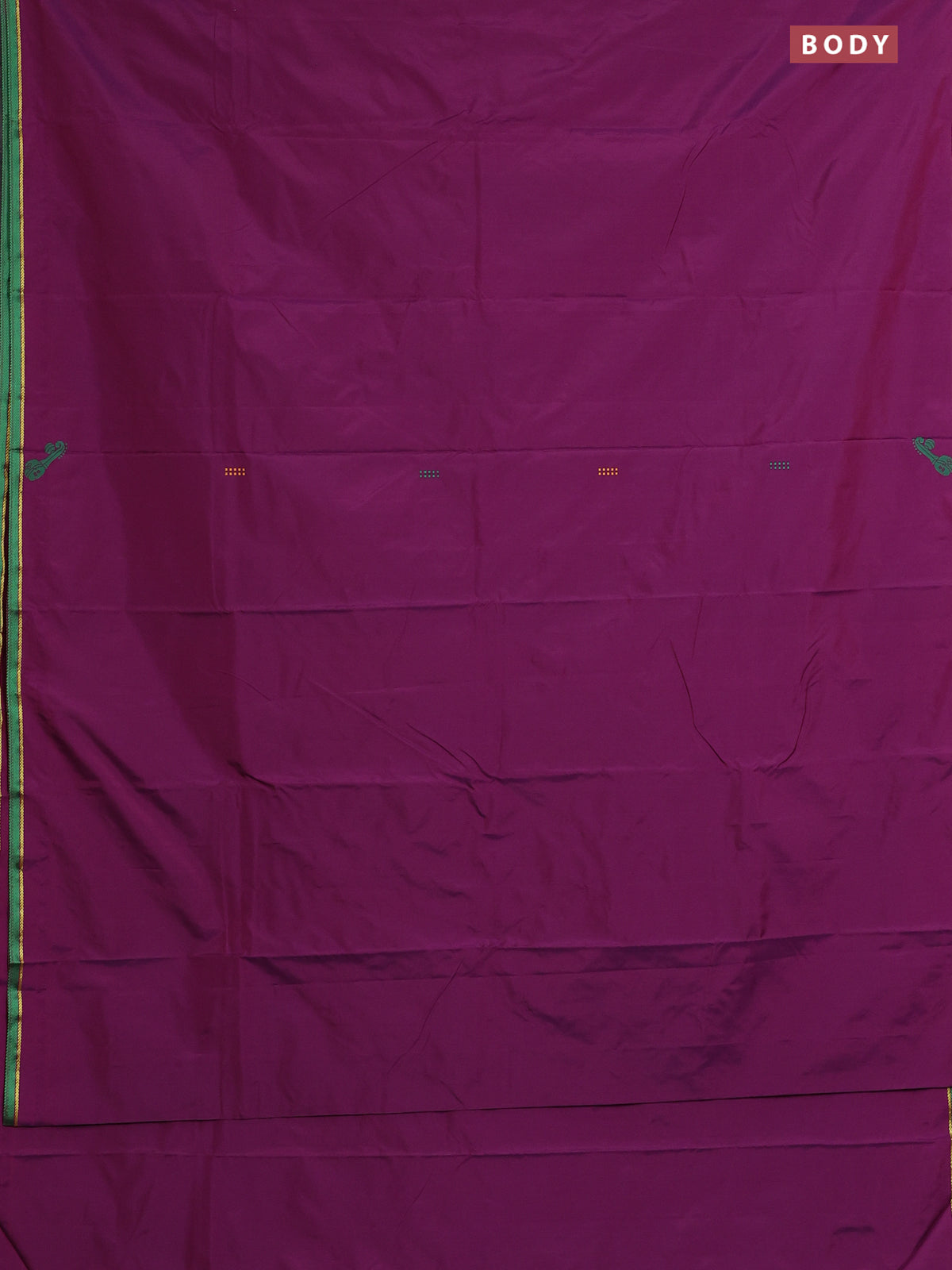 Arani semi silk saree purple and dual shade of green with thread woven buttas and thread woven butta border