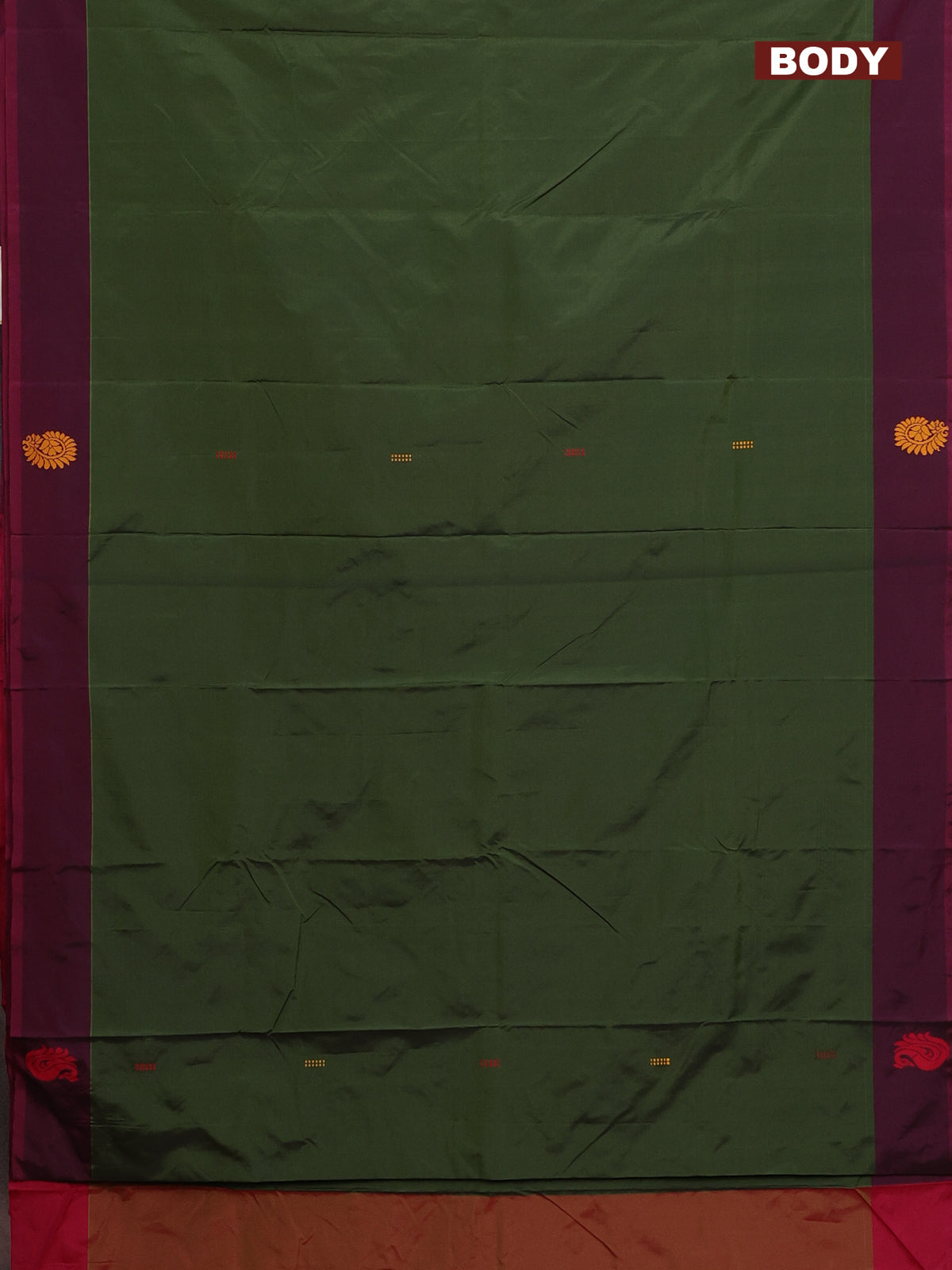 Arani semi silk saree sap green and pink with thread woven buttas and thread woven butta border