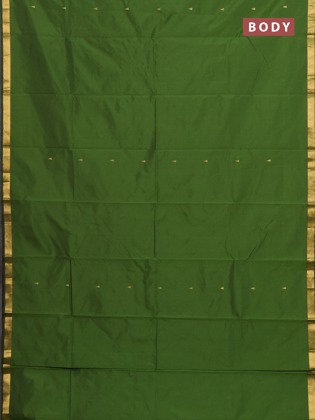 Arani semi silk saree sap green with zari woven temple buttas and zari woven border
