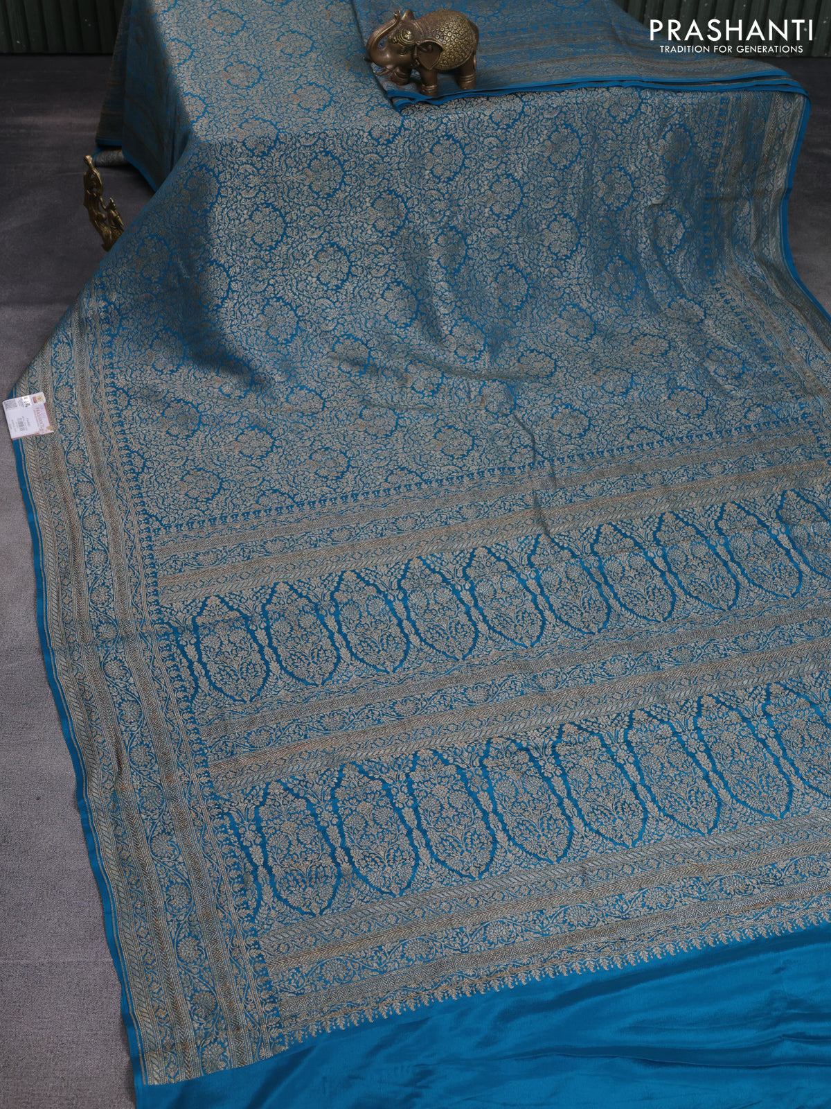 Banarasi crepe saree cs blue with allover thread & zari woven brocade weaves and woven border