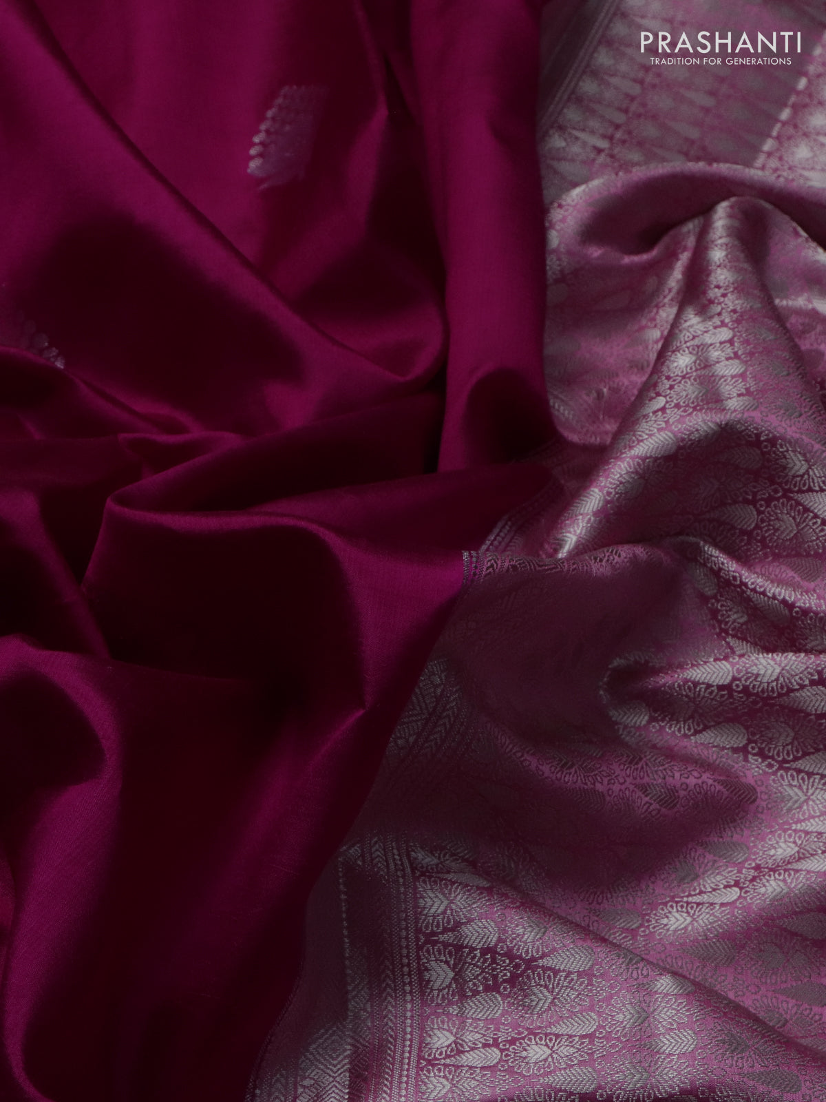 Banarasi poona silk saree dark pink and light pink with silver zari woven buttas and rich zari woven border