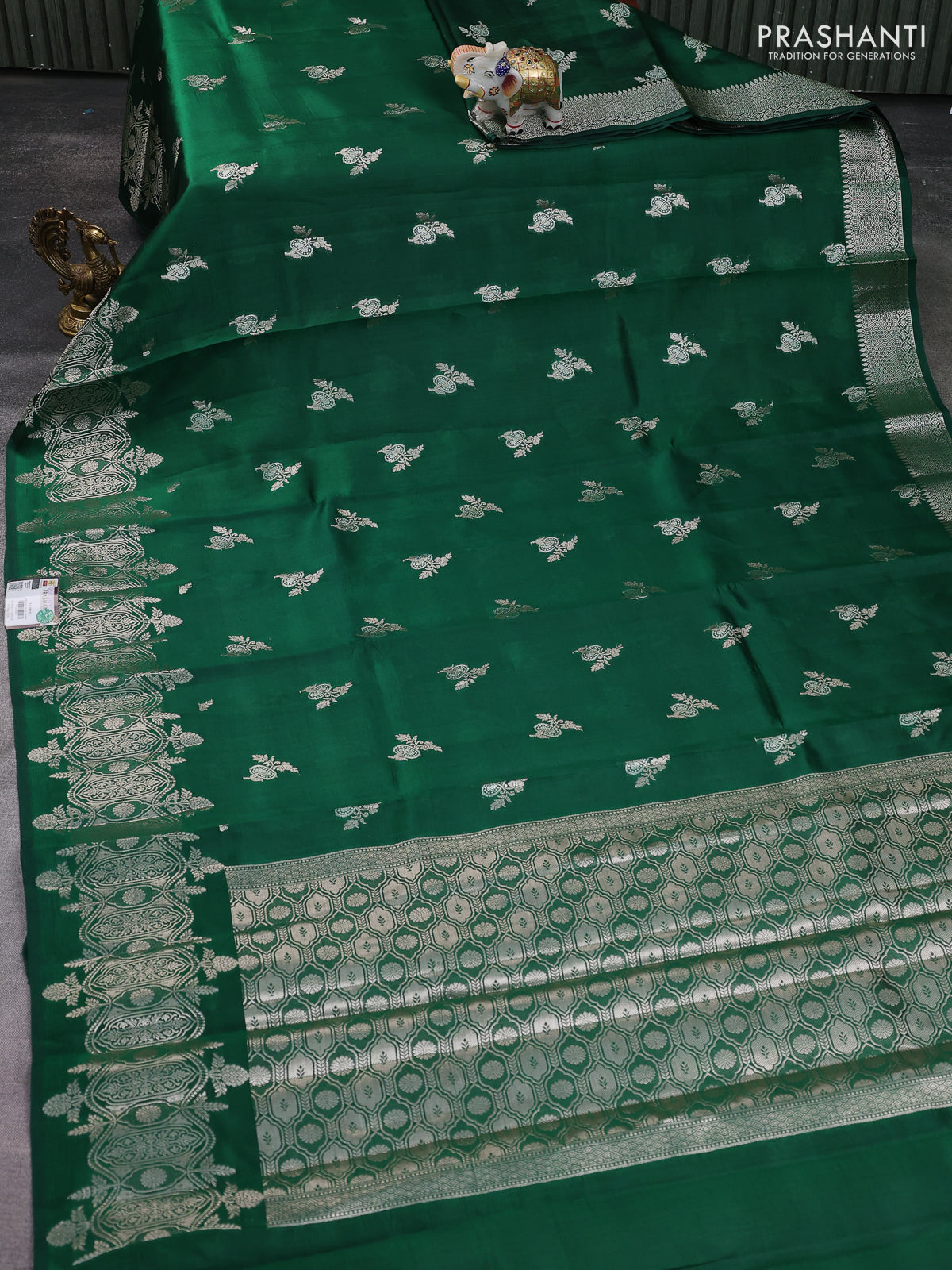 Banarasi poona silk saree green with zari woven buttas and zari woven border