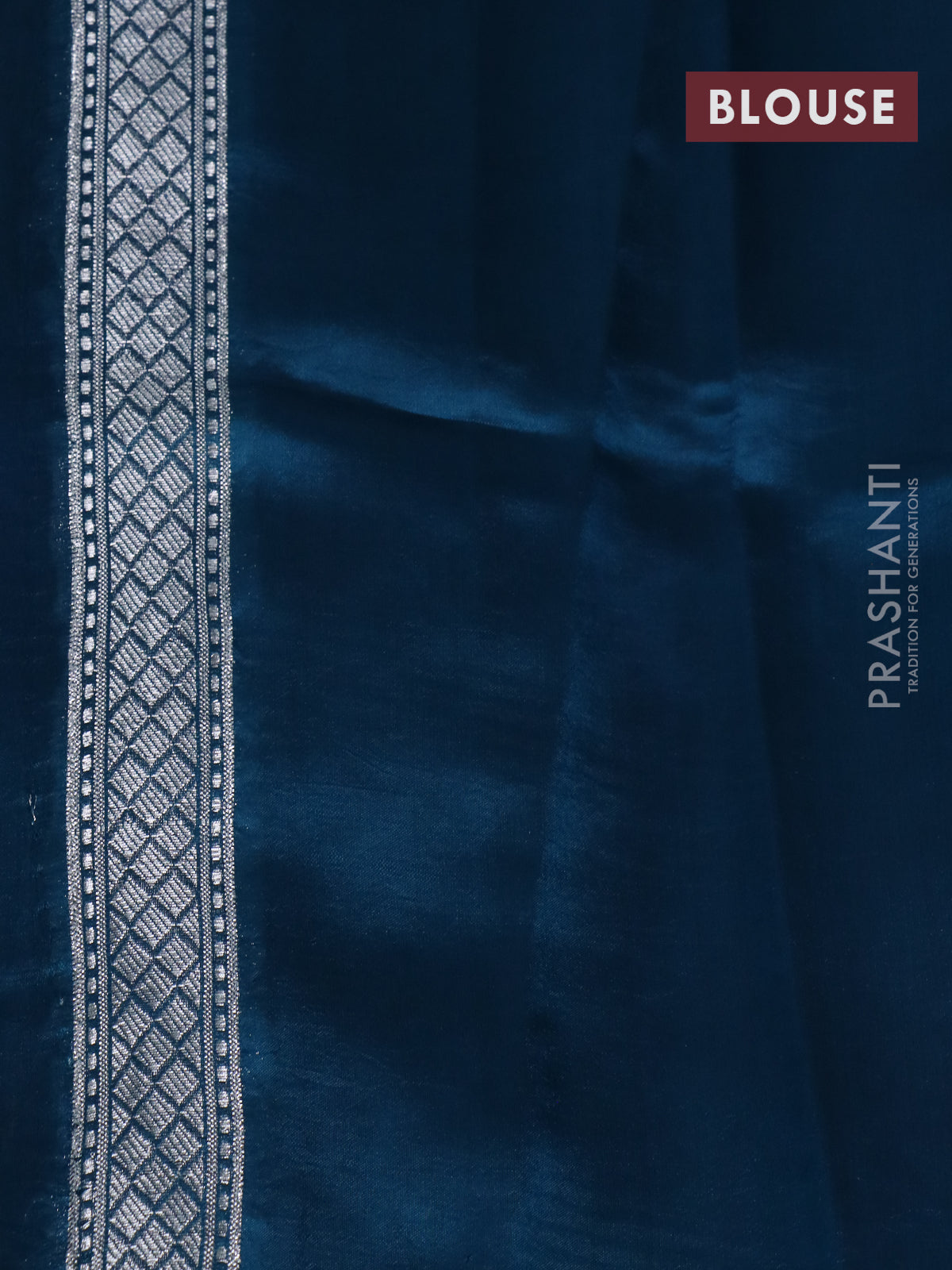 Banarasi poona silk saree pink and peacock blue with silver & gold zari woven buttas and silver zari woven border