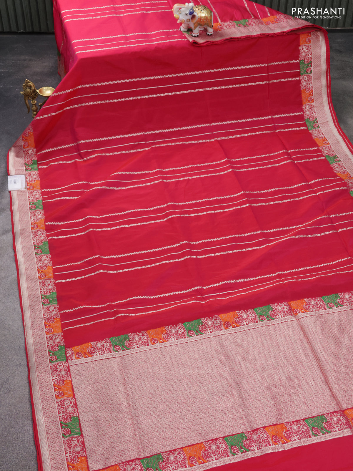 Banarasi semi katan silk saree dark pink with allover zari weaves and rich zari woven border