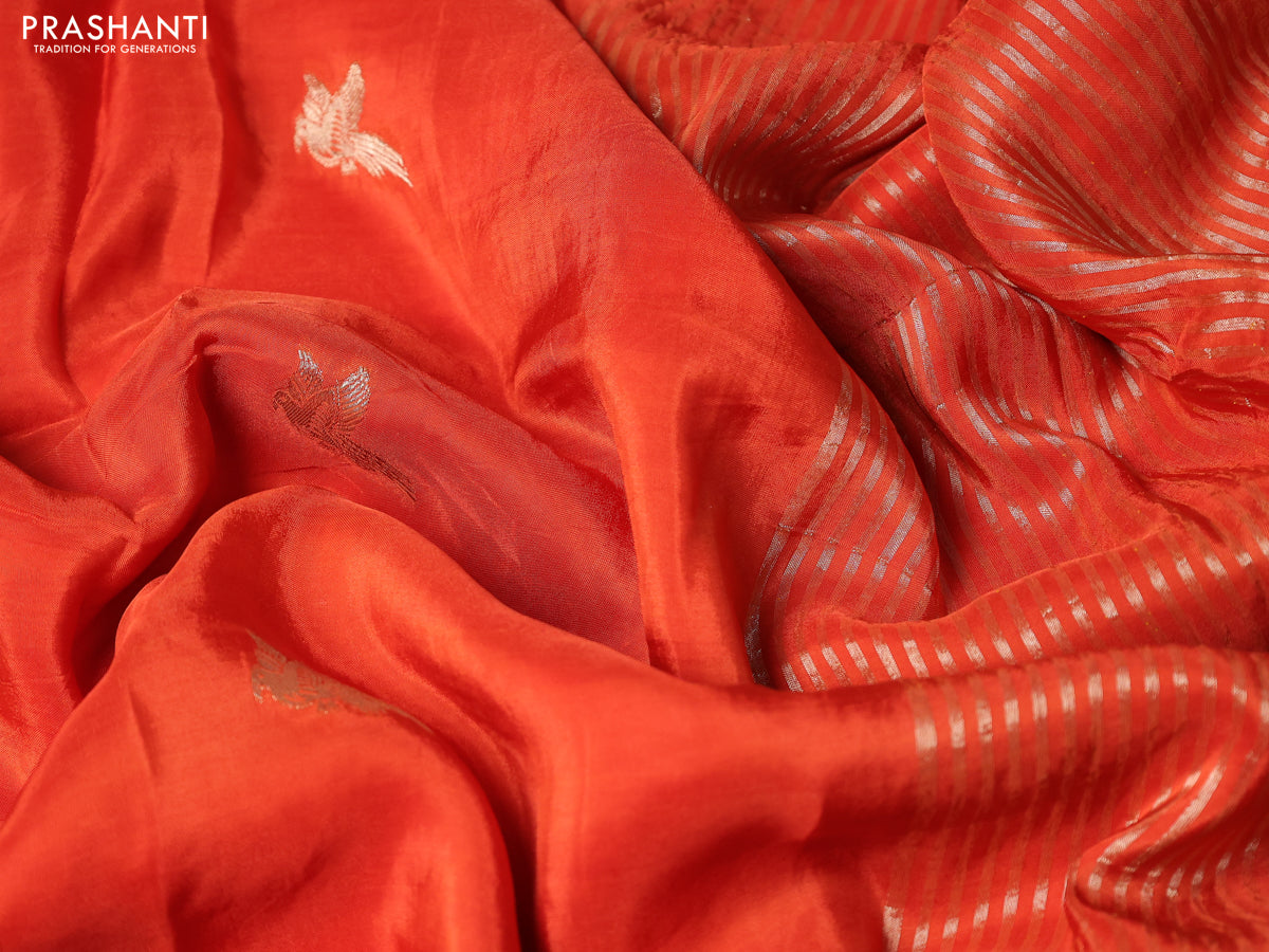 Banarasi silk saree orange and pink with zari woven brids buttas and zari woven border