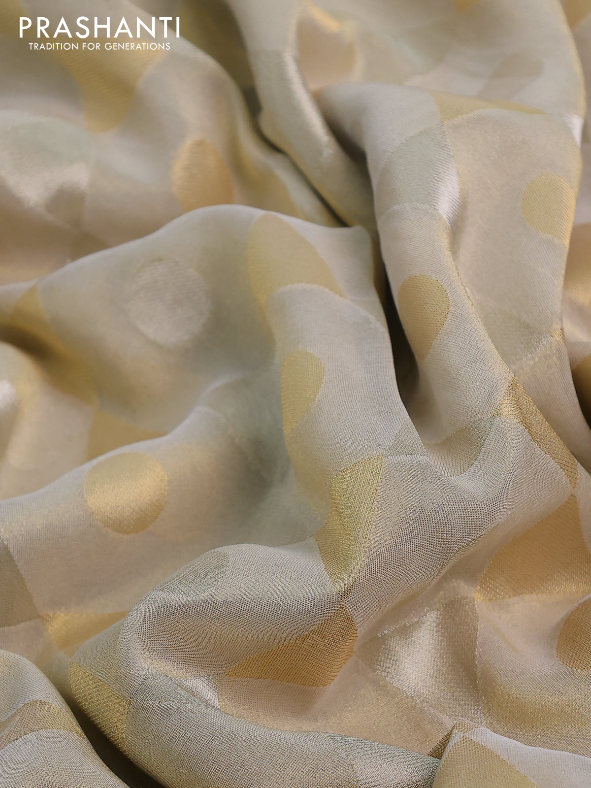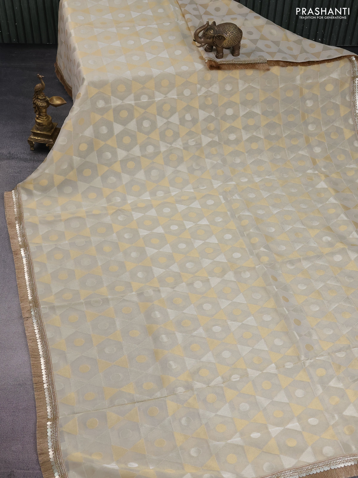 Banarasi tissue saree beige and red with allover zari woven geometric wevaes and lace work border