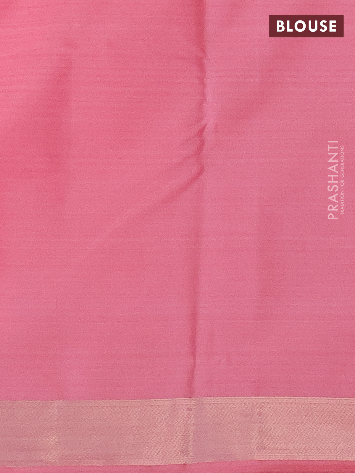 Bangalori semi silk saree peach pink with allover ikat weaves and zari woven border