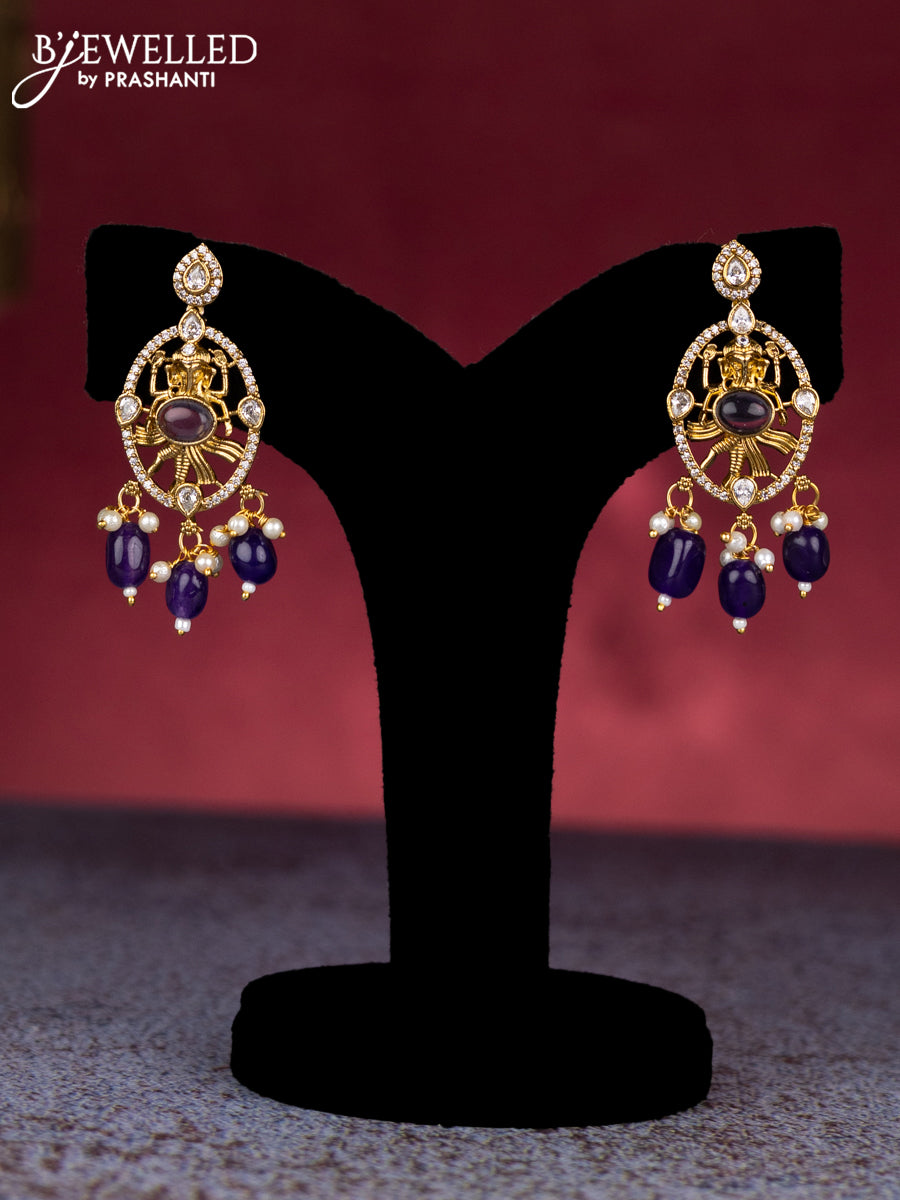 Beaded violet necklace ganesha pendant with cz stones and pearl & beads hangings in victorian finish