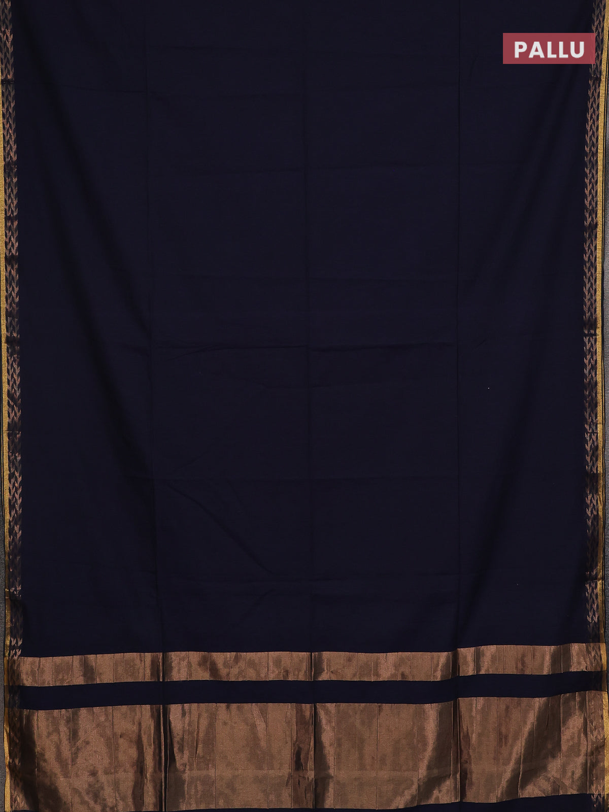 Bengal soft cotton saree deep navyblue and maroon with plain body and zari woven border