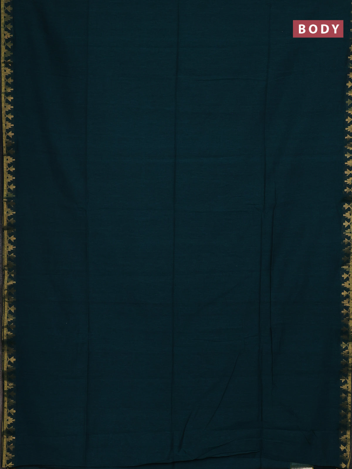 Bengal soft cotton saree peacock green and maroon with plain body and zari woven border