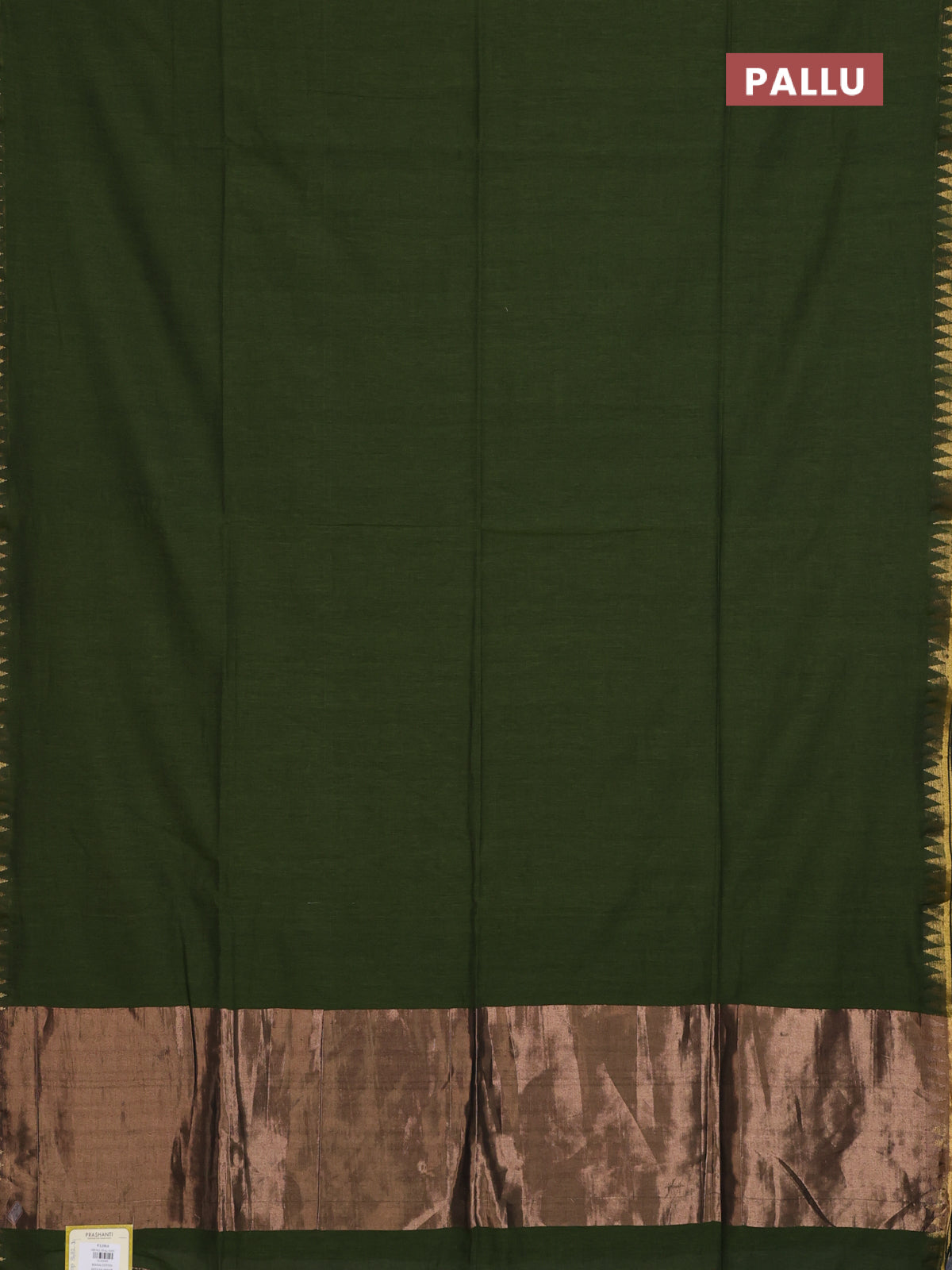 Bengal soft cotton saree sap green and blue with plain body and zari woven border