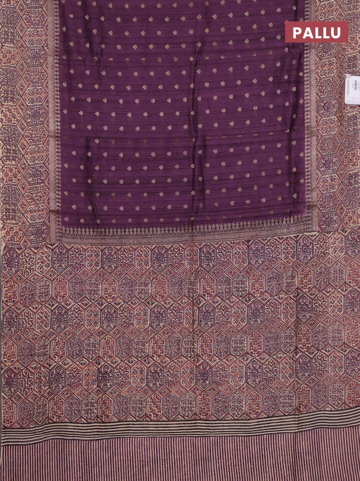Chanderi silk cotton saree dark purple and beige with allover zari buttas and printed border