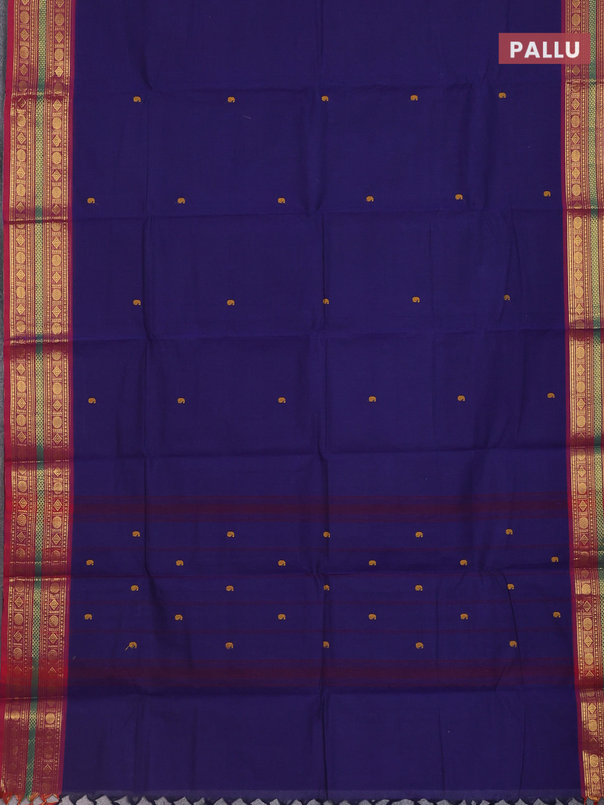 Chettinad cotton saree blue and maroon with thread woven buttas and zari woven border
