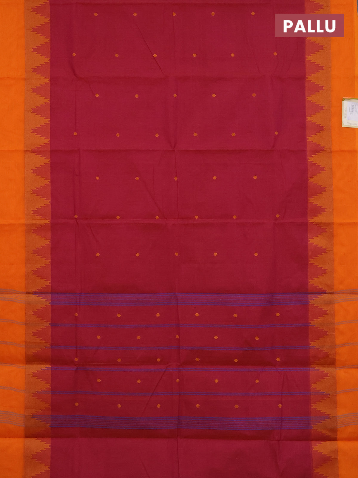 Chettinad cotton saree dual shade of magenta pink and orange with thread woven buttas and temple design thread woven simple border