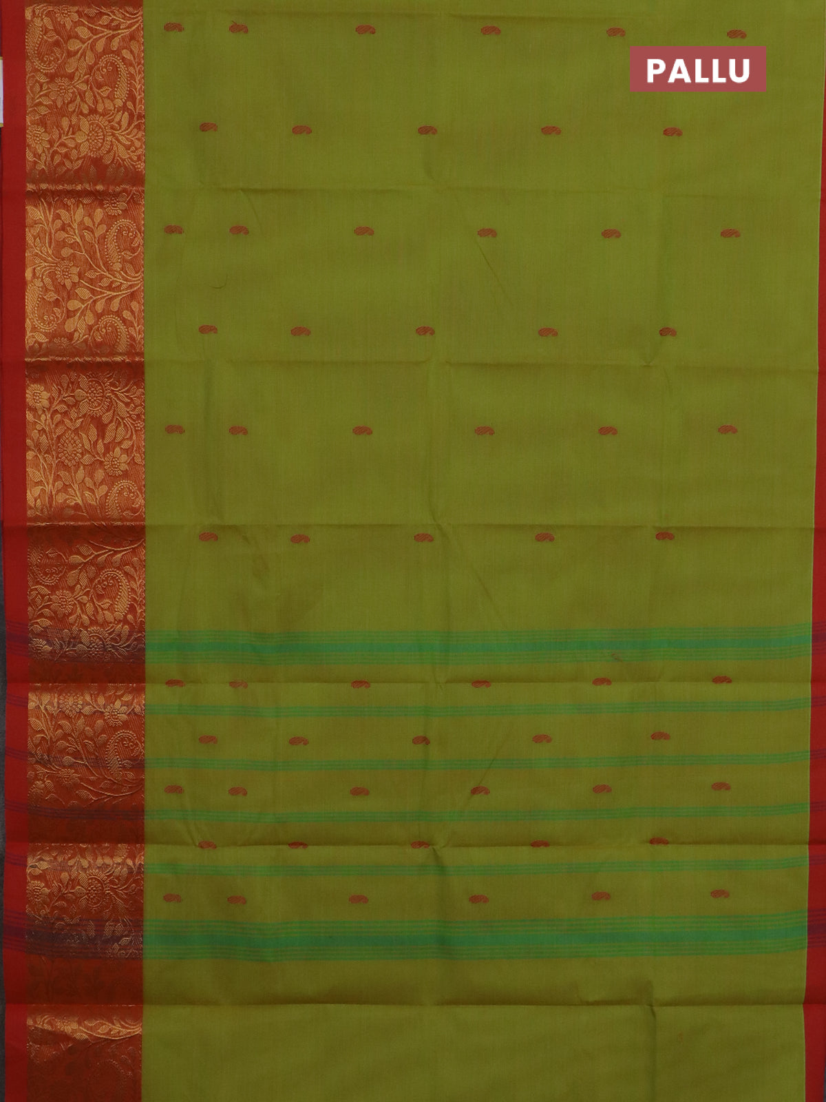 Chettinad cotton saree lime green and orange with thread woven buttas and long zari woven border