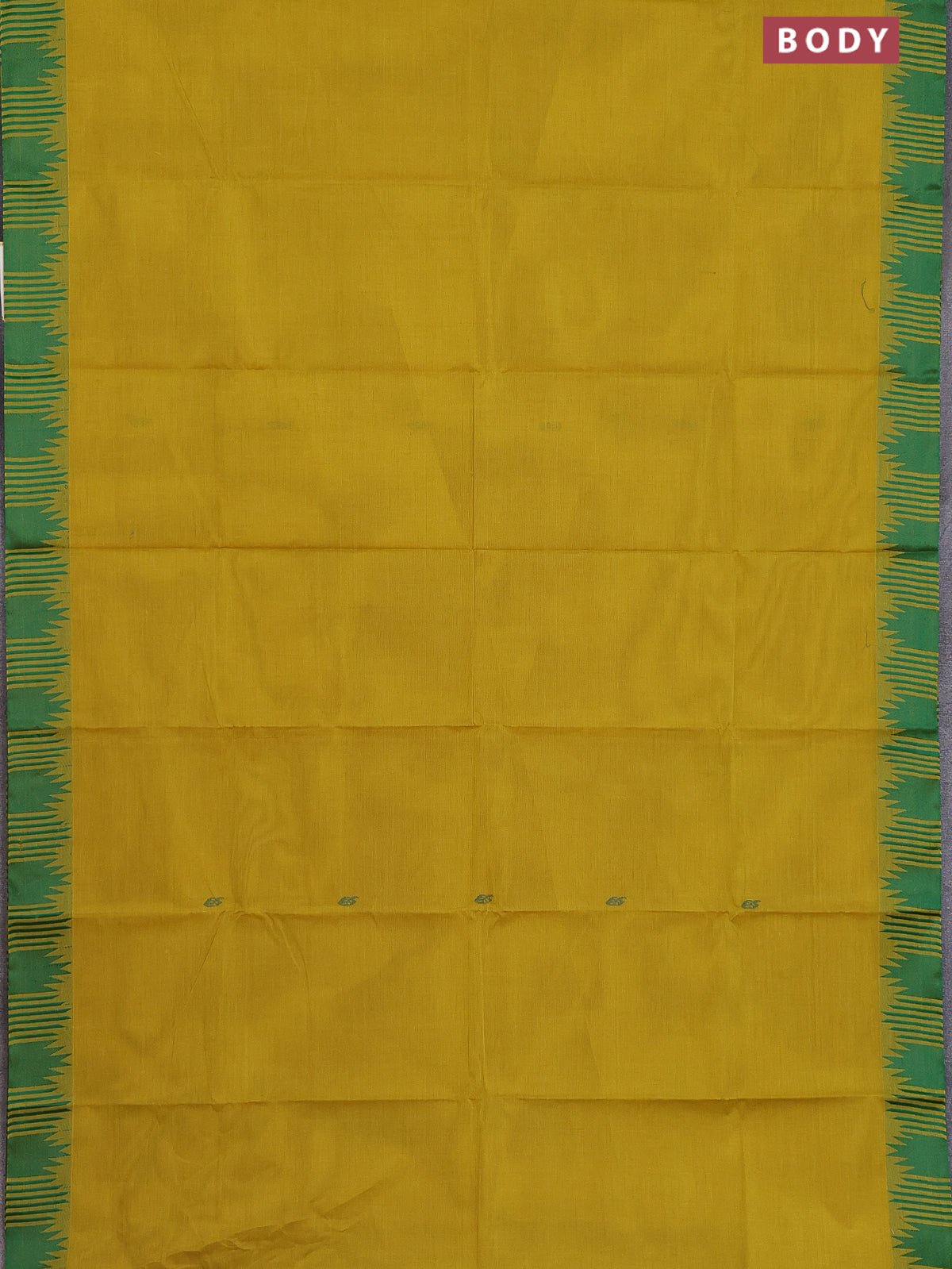 Chettinad cotton saree lime yellow and green with thread woven buttas and temple design thread woven border