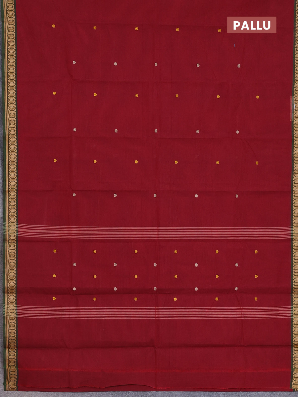 Chettinad cotton saree maroon and green with thread woven buttas and thread woven border
